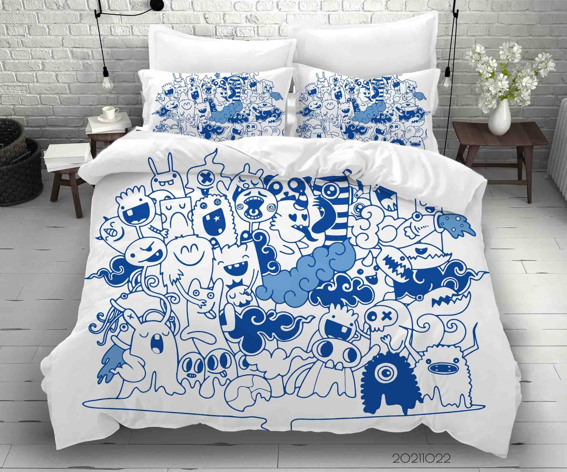3D Abstract Blue Monster Graffiti Quilt Cover Set Bedding Set Duvet Cover Pillowcases 48
