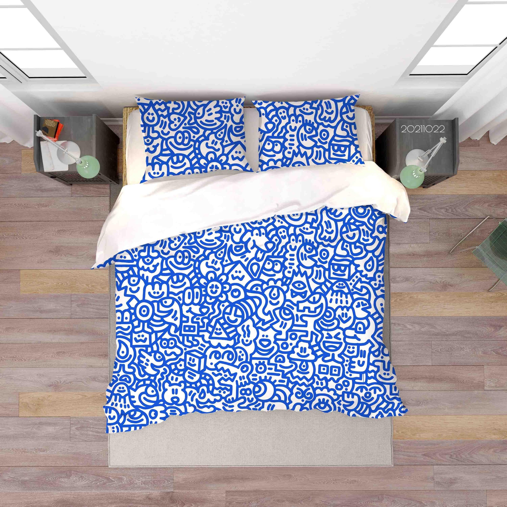3D Abstract Blue Monster Graffiti Quilt Cover Set Bedding Set Duvet Cover Pillowcases 6