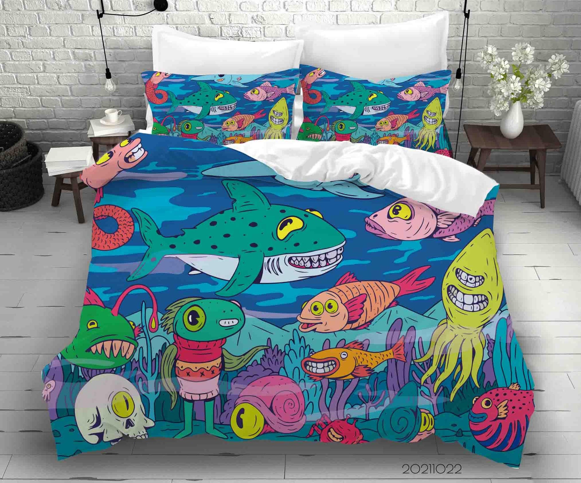 3D Abstract Color Marine Life Doodle Quilt Cover Set Bedding Set Duvet Cover Pillowcases 16