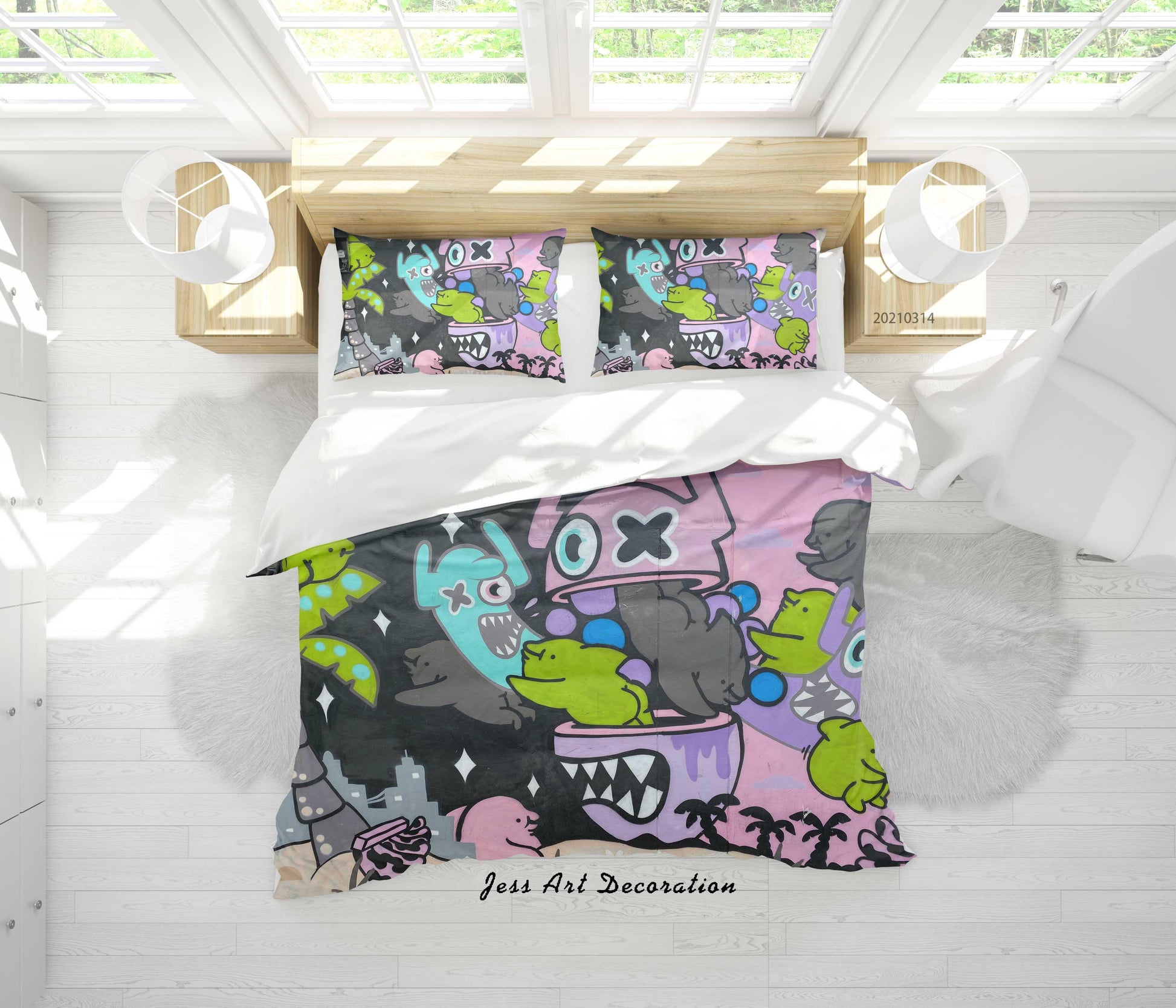 3D Abstract Colored Graffiti Monster Quilt Cover Set Bedding Set Duvet Cover Pillowcases 159
