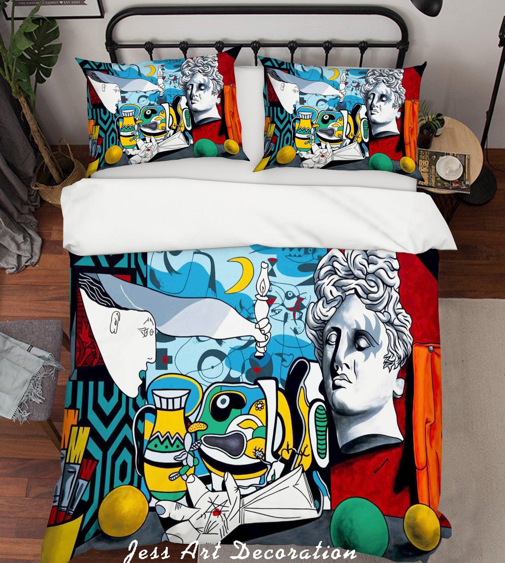 3D Abstract Colorful Moon White Statue Quilt Cover Set Bedding Set Duvet Cover Pillowcases LXL