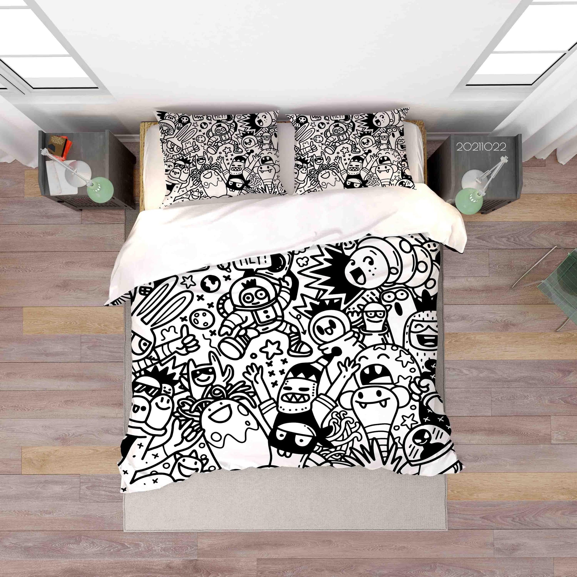 3D Abstract Gray Monster Graffiti Quilt Cover Set Bedding Set Duvet Cover Pillowcases 10