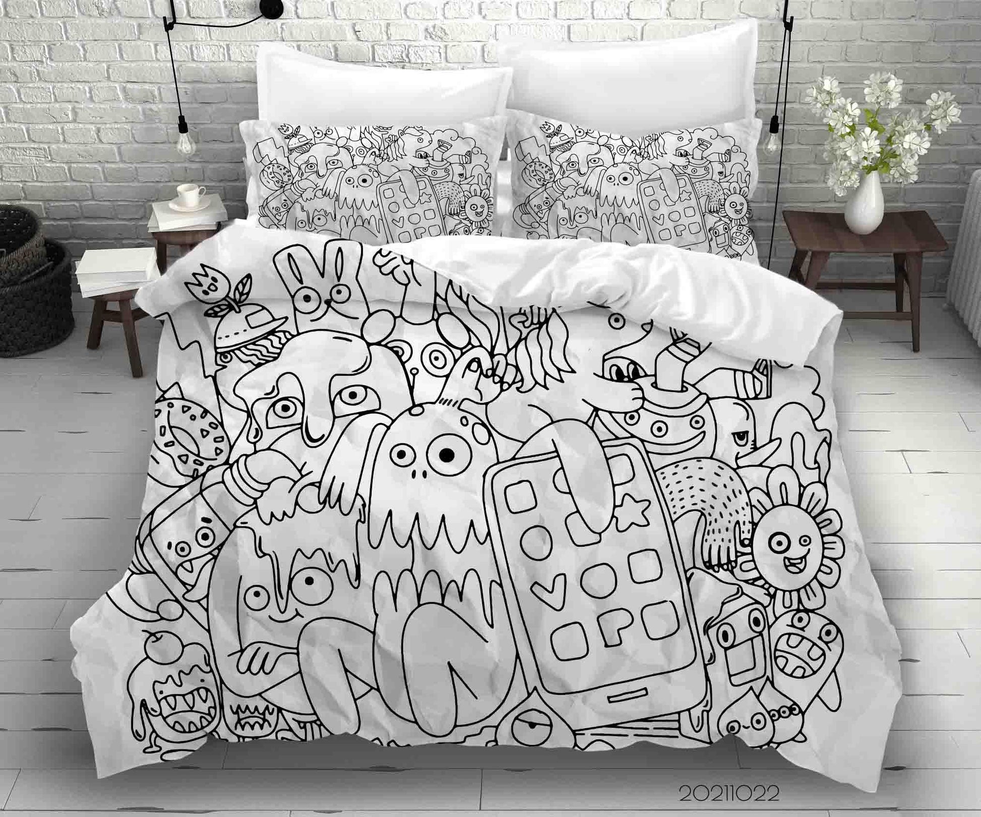 3D Abstract Gray Monster Graffiti Quilt Cover Set Bedding Set Duvet Cover Pillowcases 20