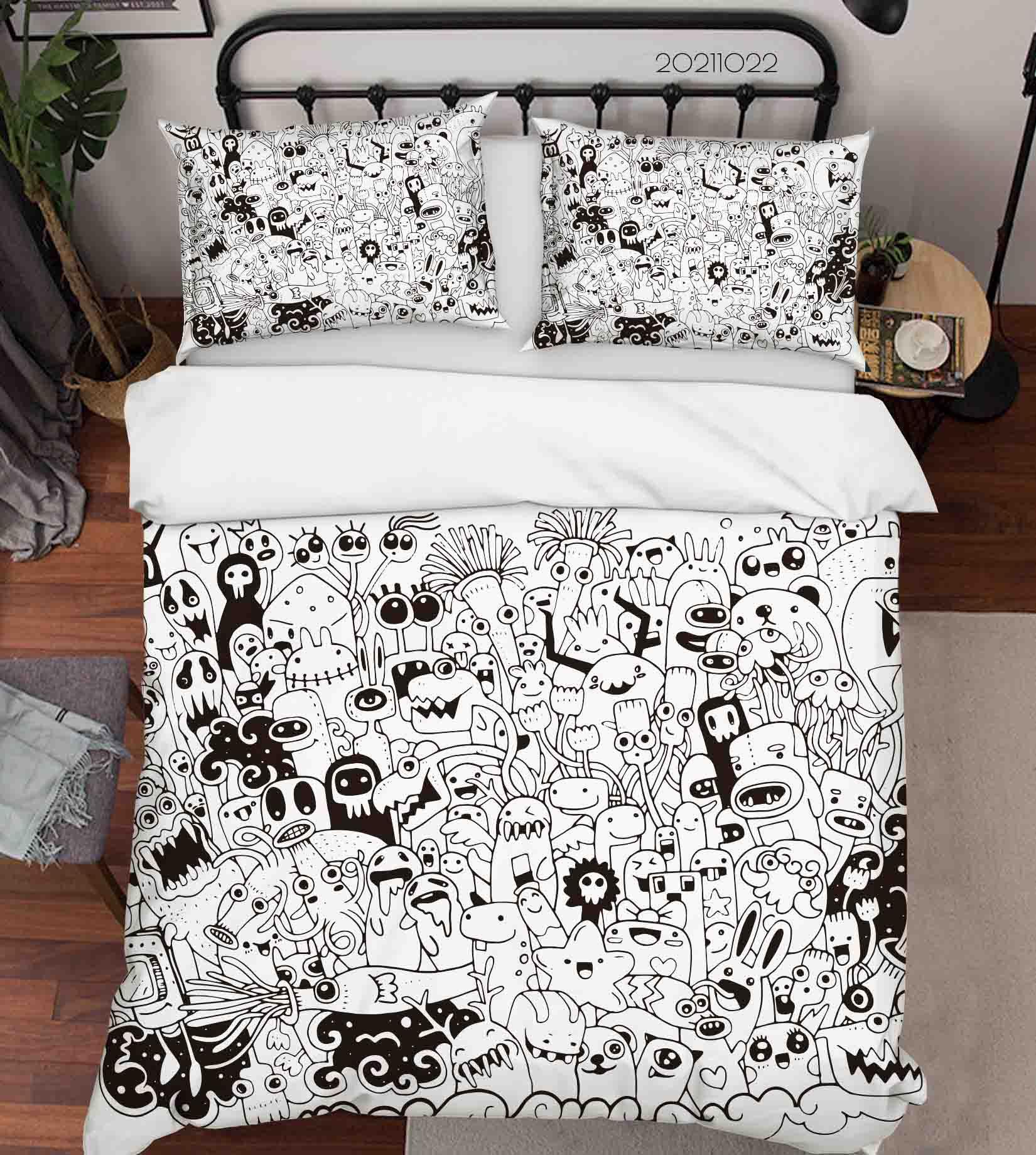 3D Abstract Gray Monster Graffiti Quilt Cover Set Bedding Set Duvet Cover Pillowcases 49
