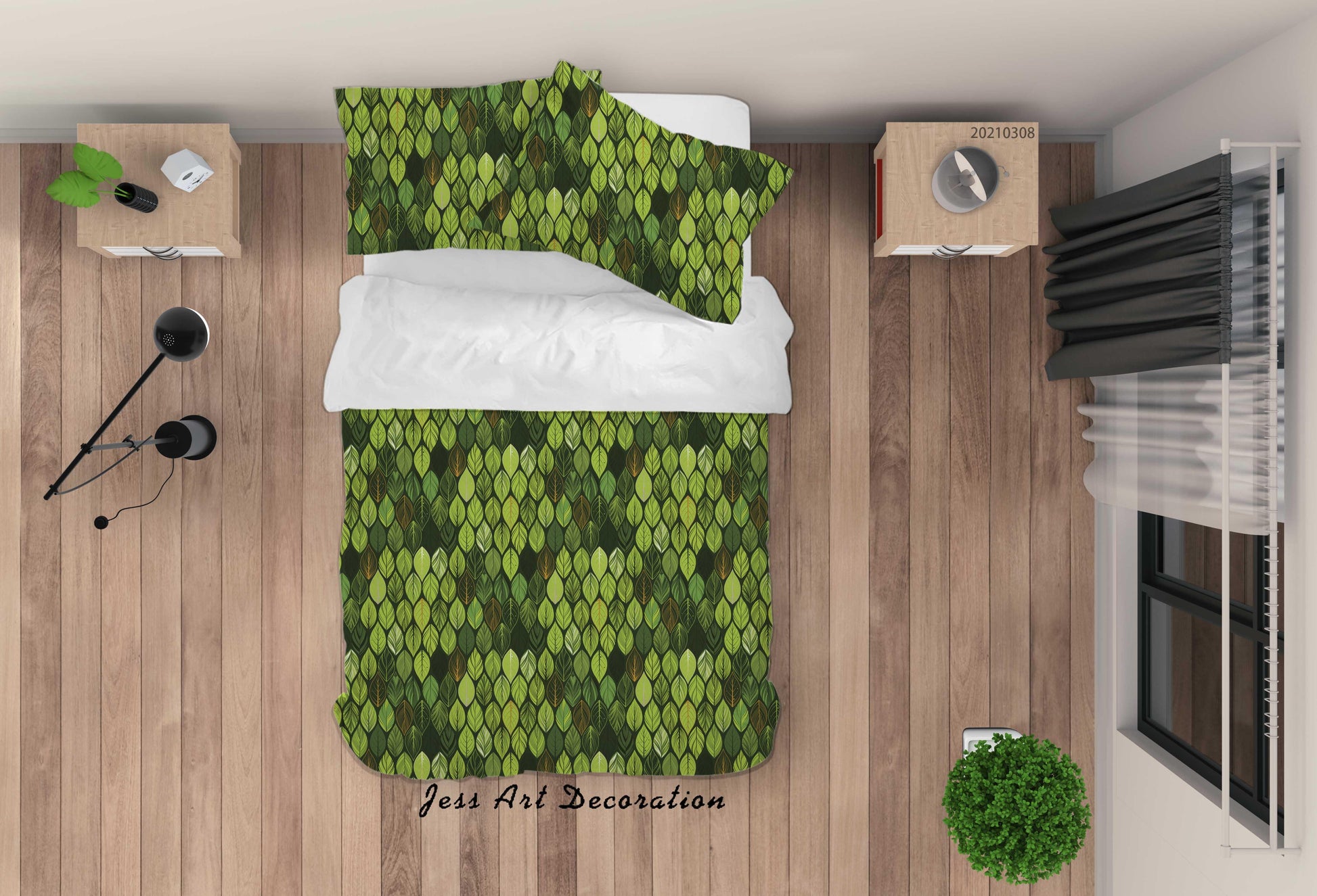 3D Abstract Green Leaf Quilt Cover Set Bedding Set Duvet Cover Pillowcases 261