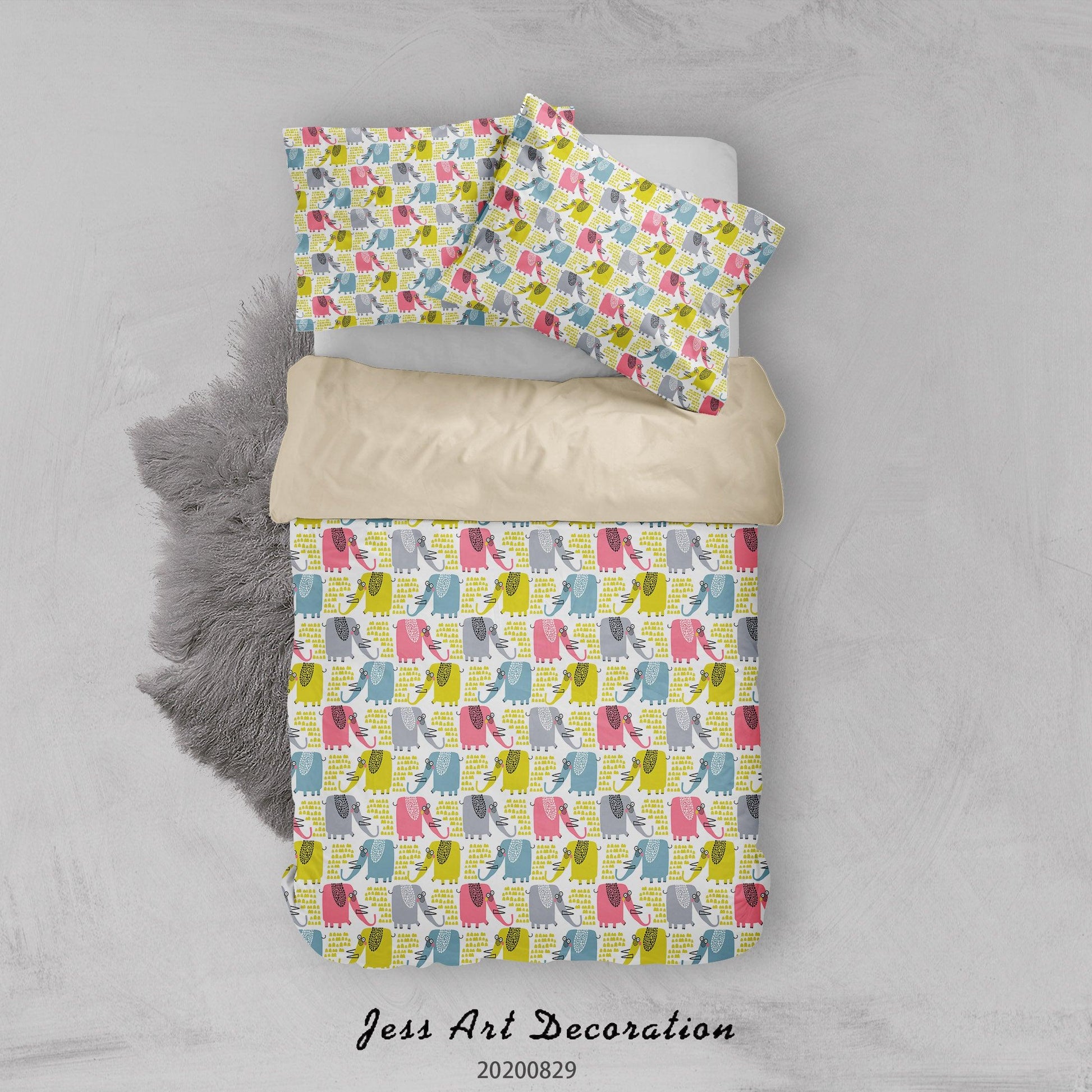 3D Abstract Hand Draw Cartoon Elephant Pattern Quilt Cover Set Bedding Set Duvet Cover Pillowcases WJ 3506