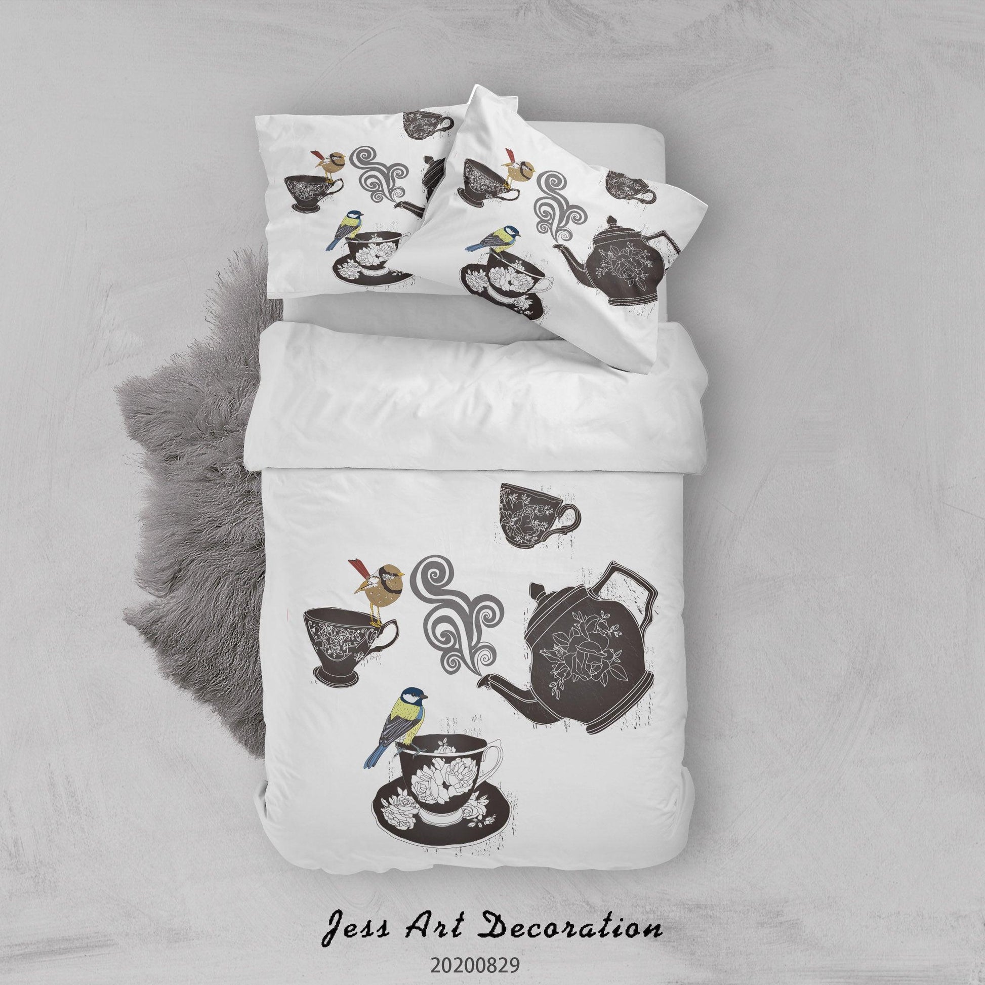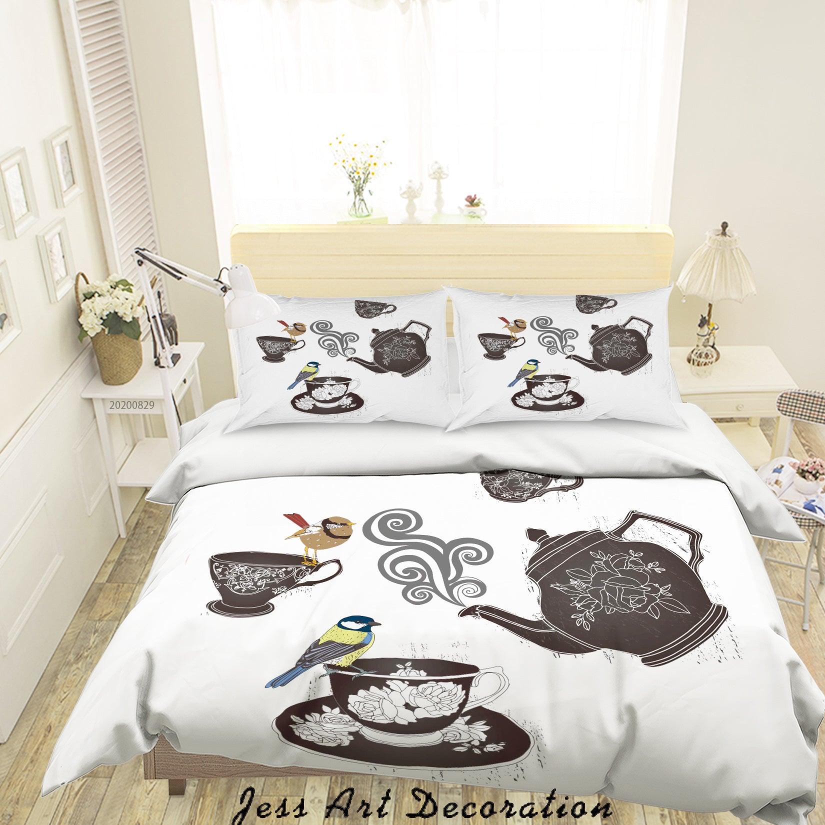 3D Abstract Hand Draw Cartoon Teacup Bird Pattern Quilt Cover Set Bedding Set Duvet Cover Pillowcases WJ 3575