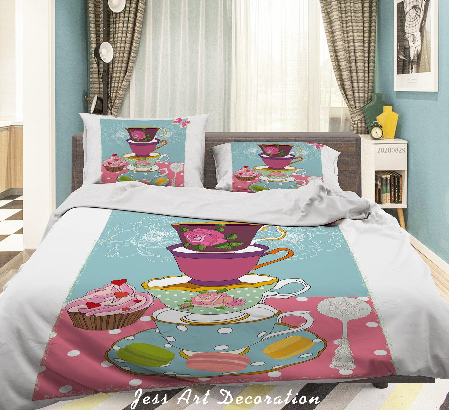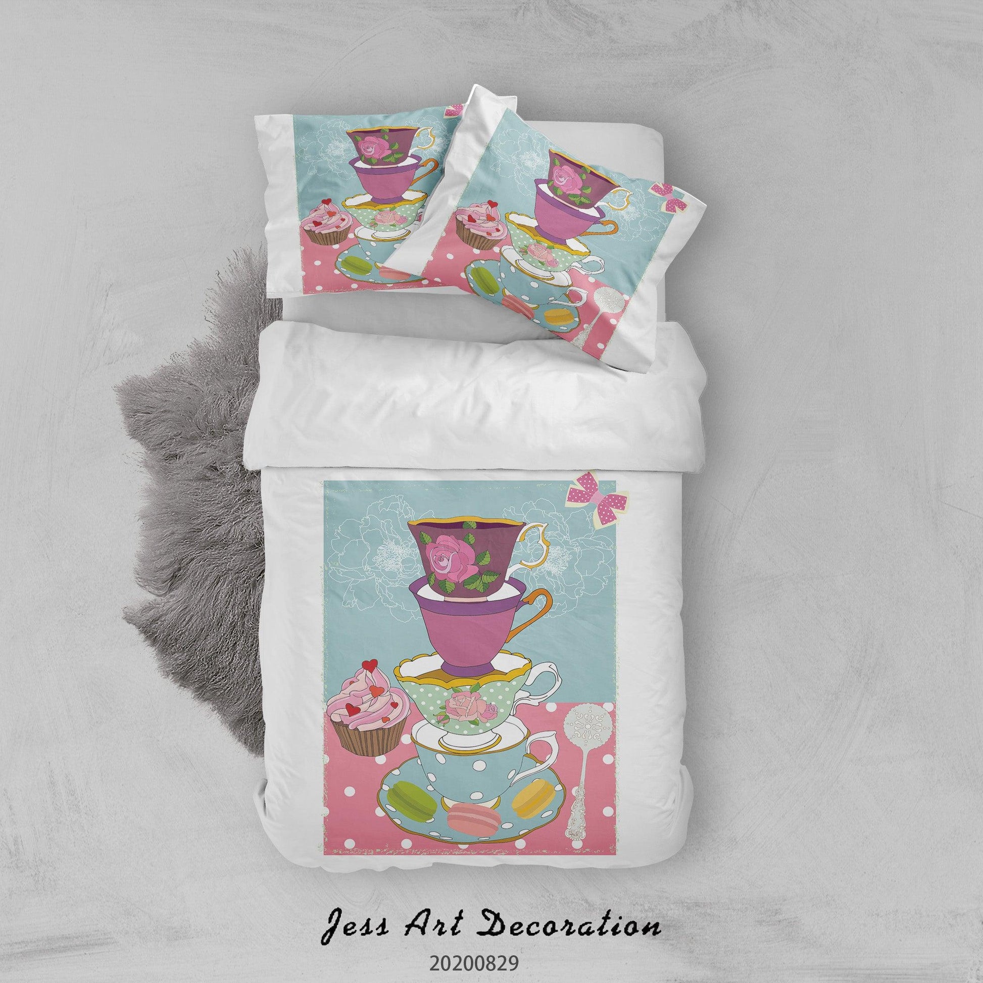 3D Abstract Hand Draw Cartoon Teacup Dessert Pattern Quilt Cover Set Bedding Set Duvet Cover Pillowcases WJ 3565