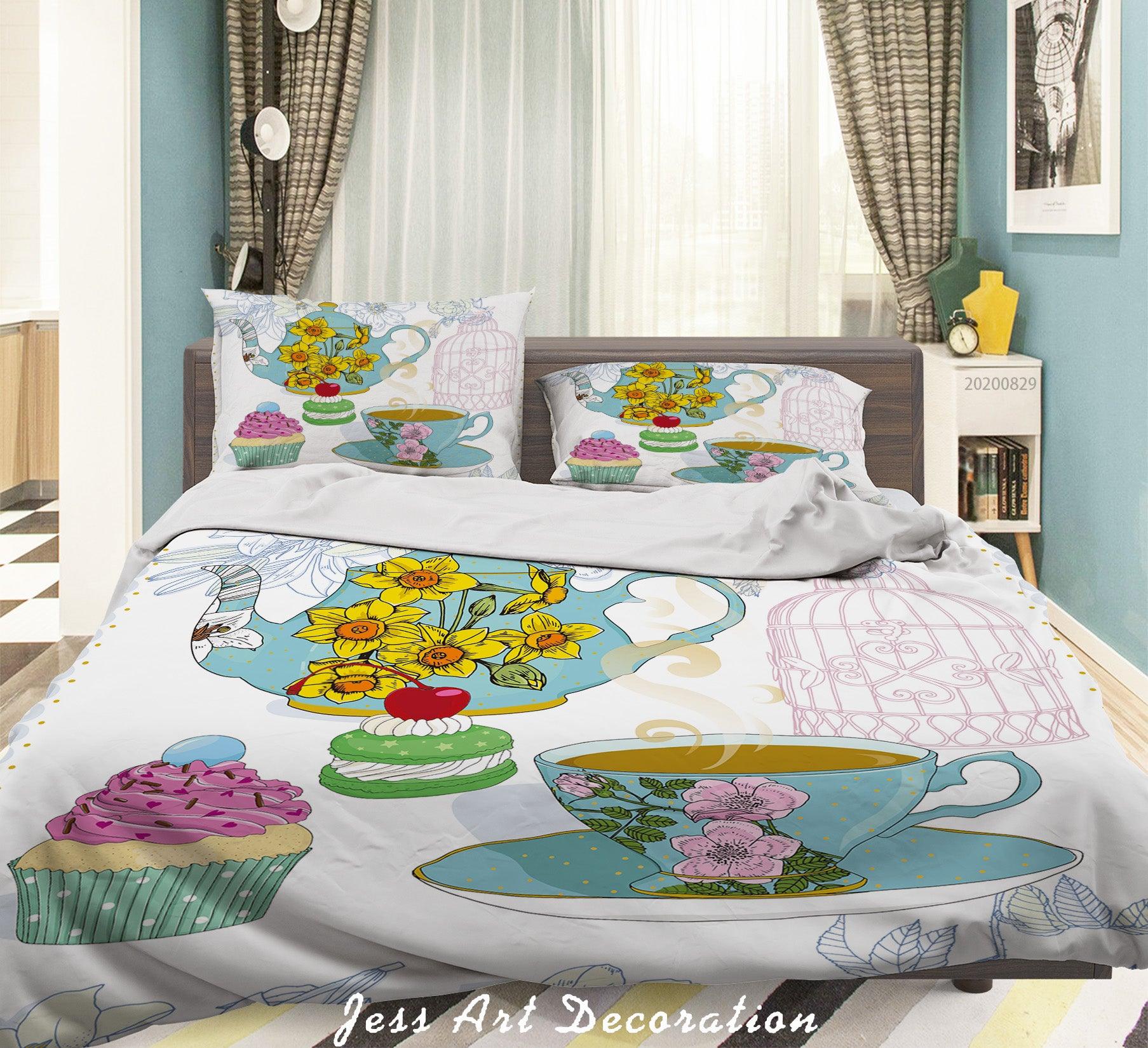 3D Abstract Hand Draw Cartoon Teacup Floral Pattern Quilt Cover Set Bedding Set Duvet Cover Pillowcases WJ 3594