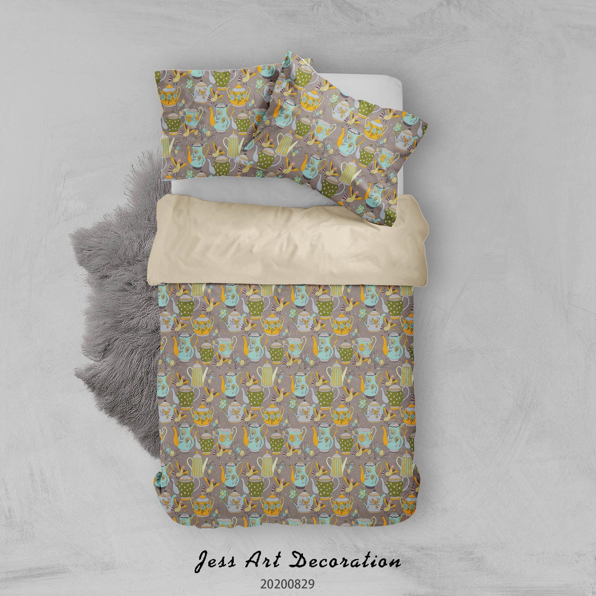 3D Abstract Hand Draw Cartoon Teapot Pattern Quilt Cover Set Bedding Set Duvet Cover Pillowcases WJ 3549