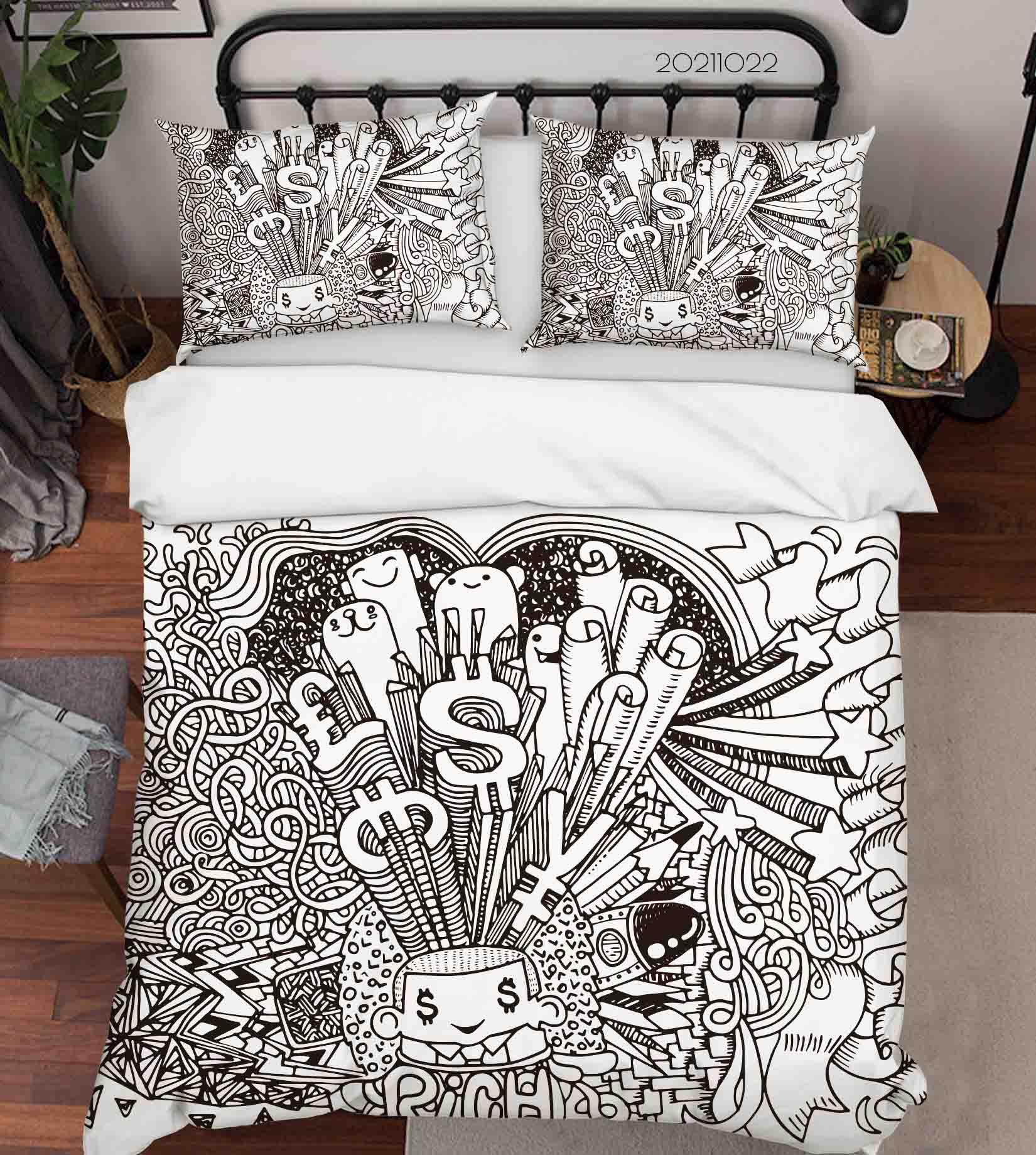3D Abstract Monster Graffiti Quilt Cover Set Bedding Set Duvet Cover Pillowcases 45