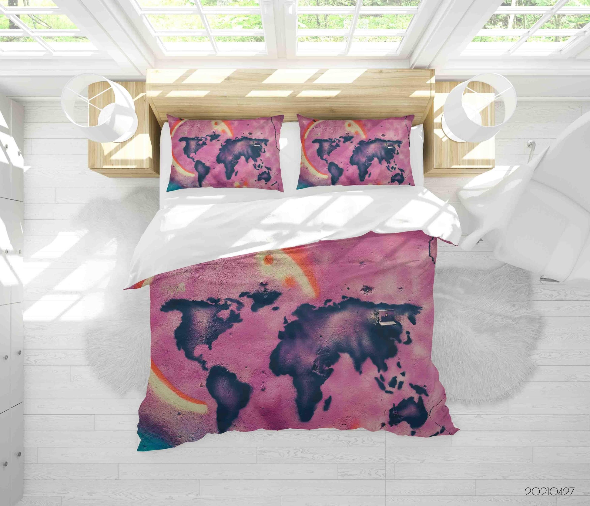 3D Abstract Pink Map Graffiti Quilt Cover Set Bedding Set Duvet Cover Pillowcases 123