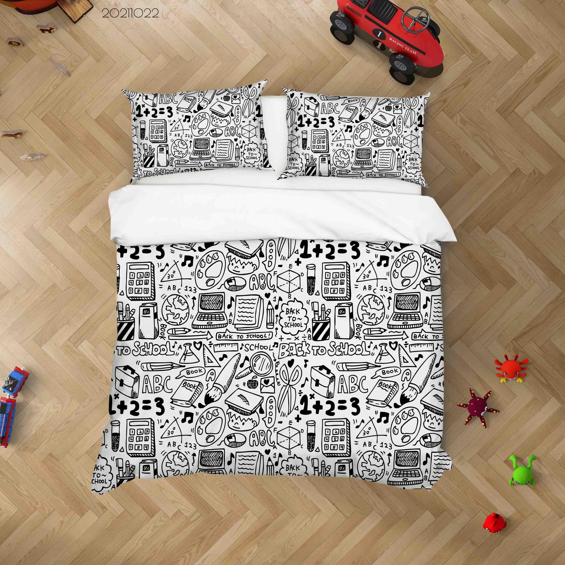 3D Abstract School Supplies Graffiti Quilt Cover Set Bedding Set Duvet Cover Pillowcases 64
