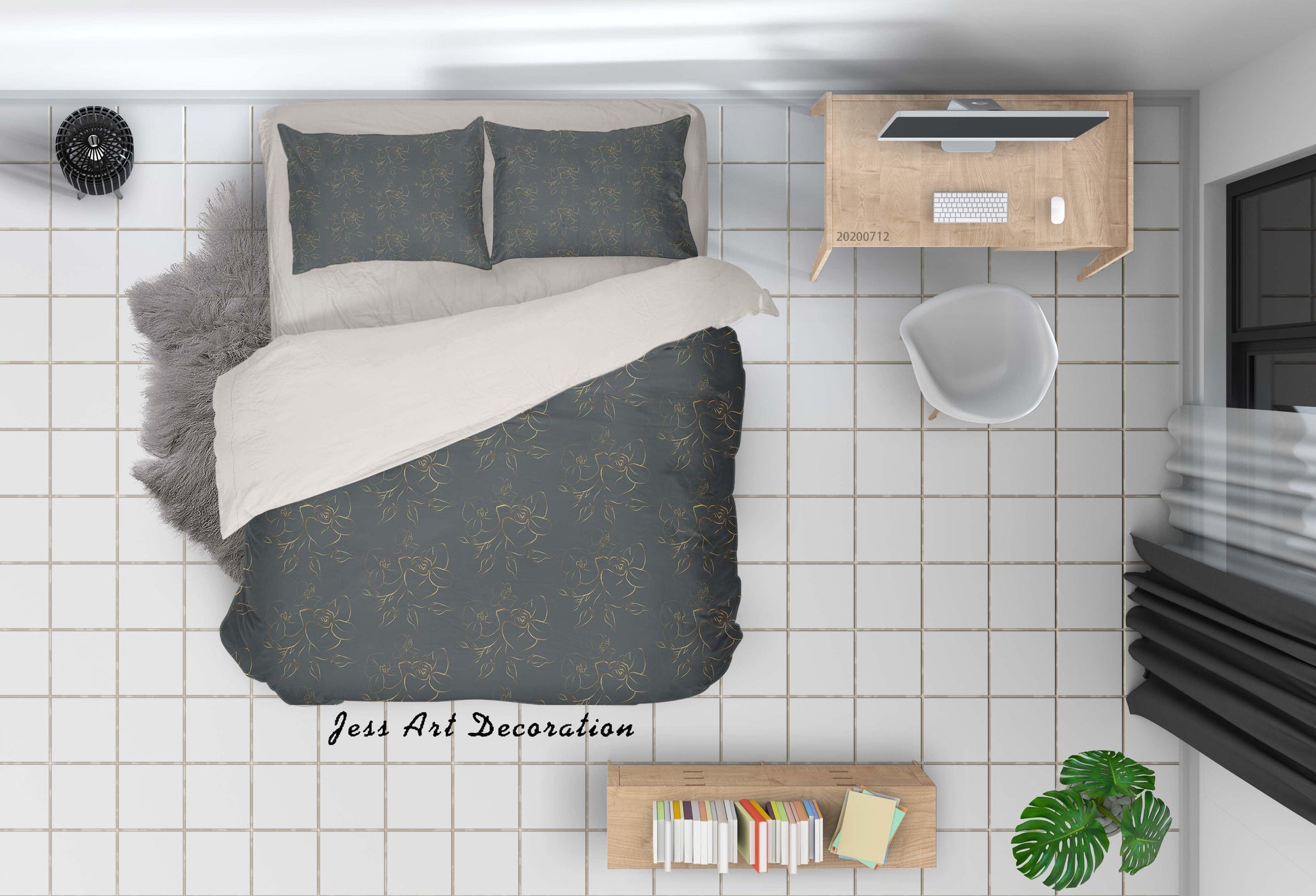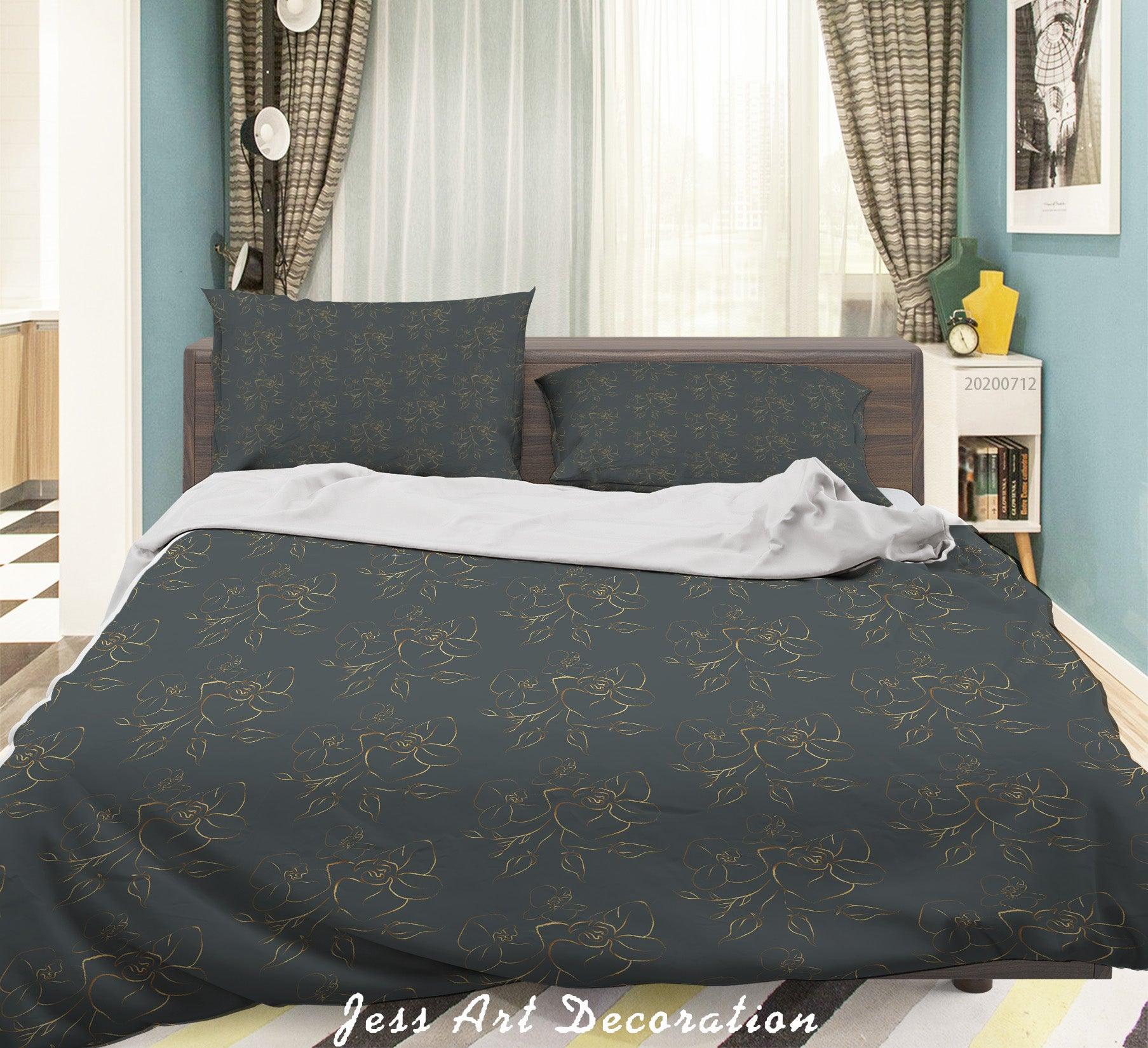 3D Abstract Vintage Gray Line Floral Pattern Quilt Cover Set Bedding Set Duvet Cover Pillowcases WJ 4103
