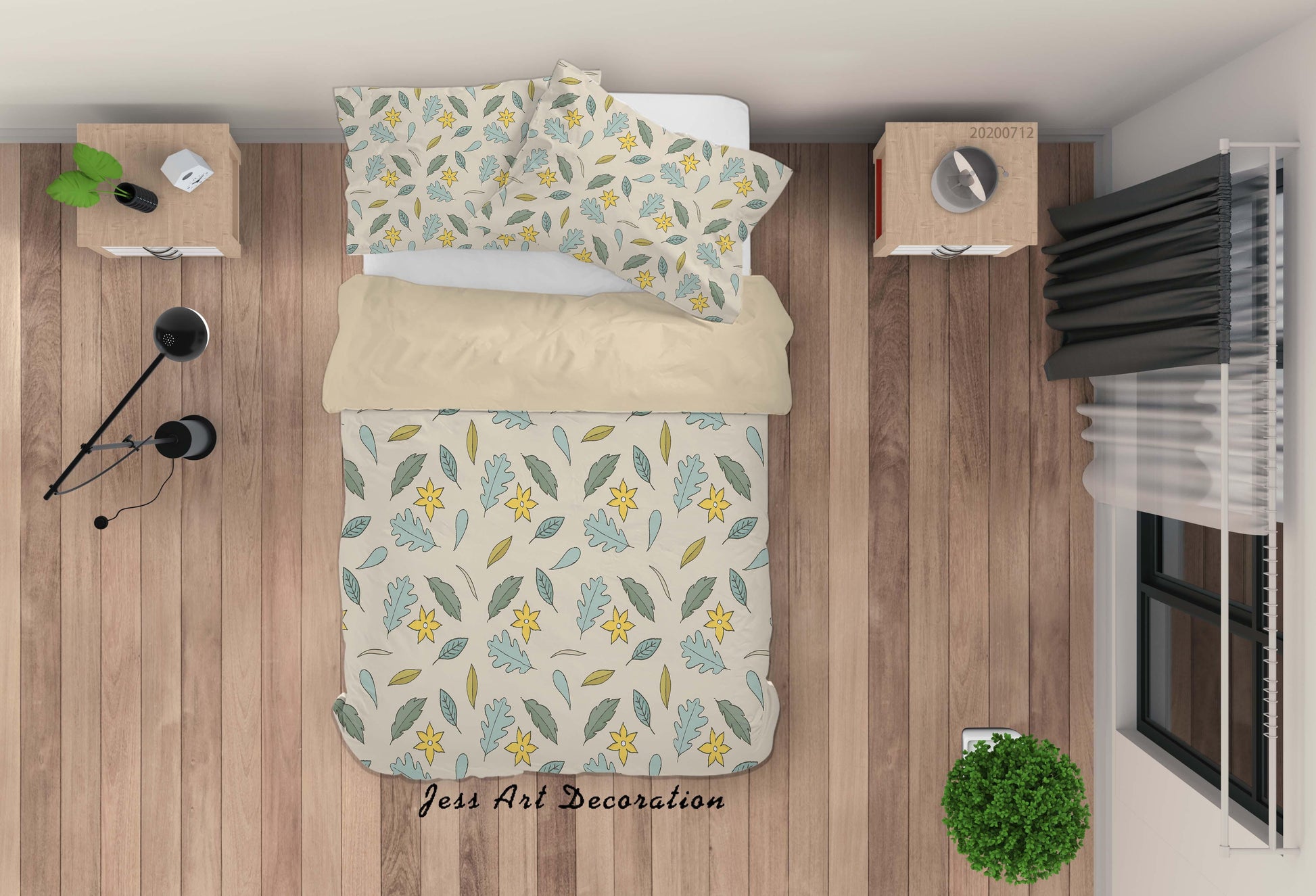 3D Abstract Vintage Leaves Pattern Quilt Cover Set Bedding Set Duvet Cover Pillowcases WJ 4009