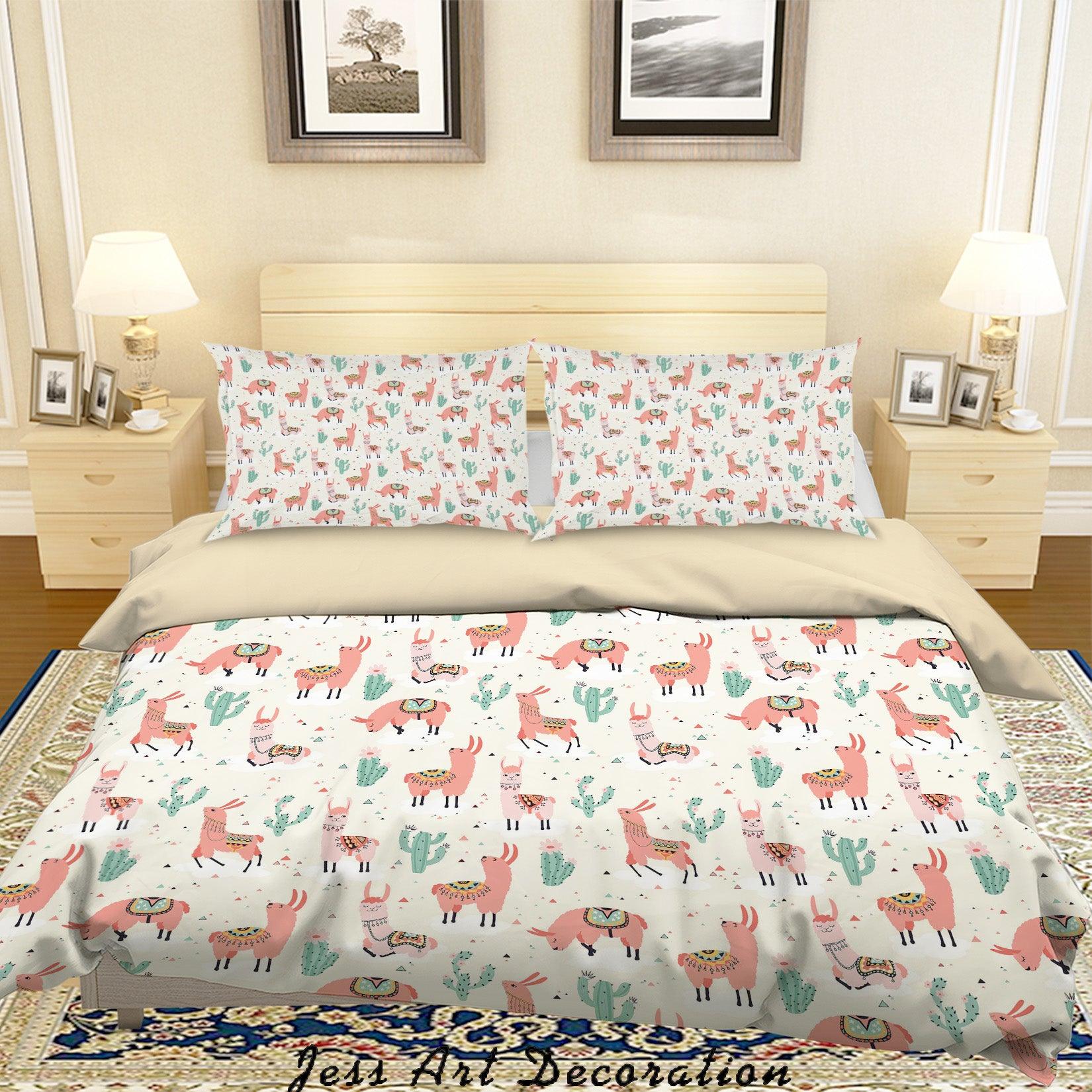 3D Alpaca Cactus Triangle Quilt Cover Set Bedding Set Duvet Cover Pillowcases SF117