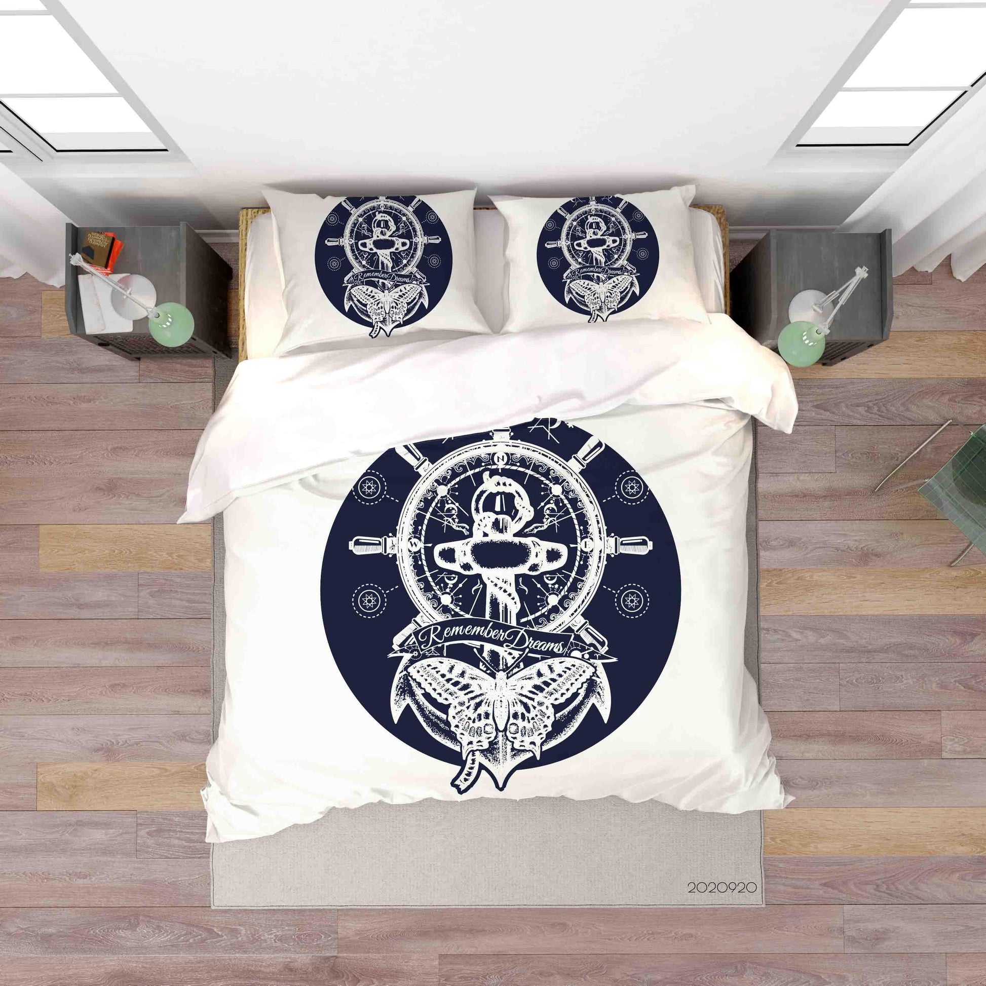 3D Anchor Steering Wheel Butterfly Tattoo Sign Quilt Cover Set Bedding Set Duvet Cover Pillowcases WJ 9146
