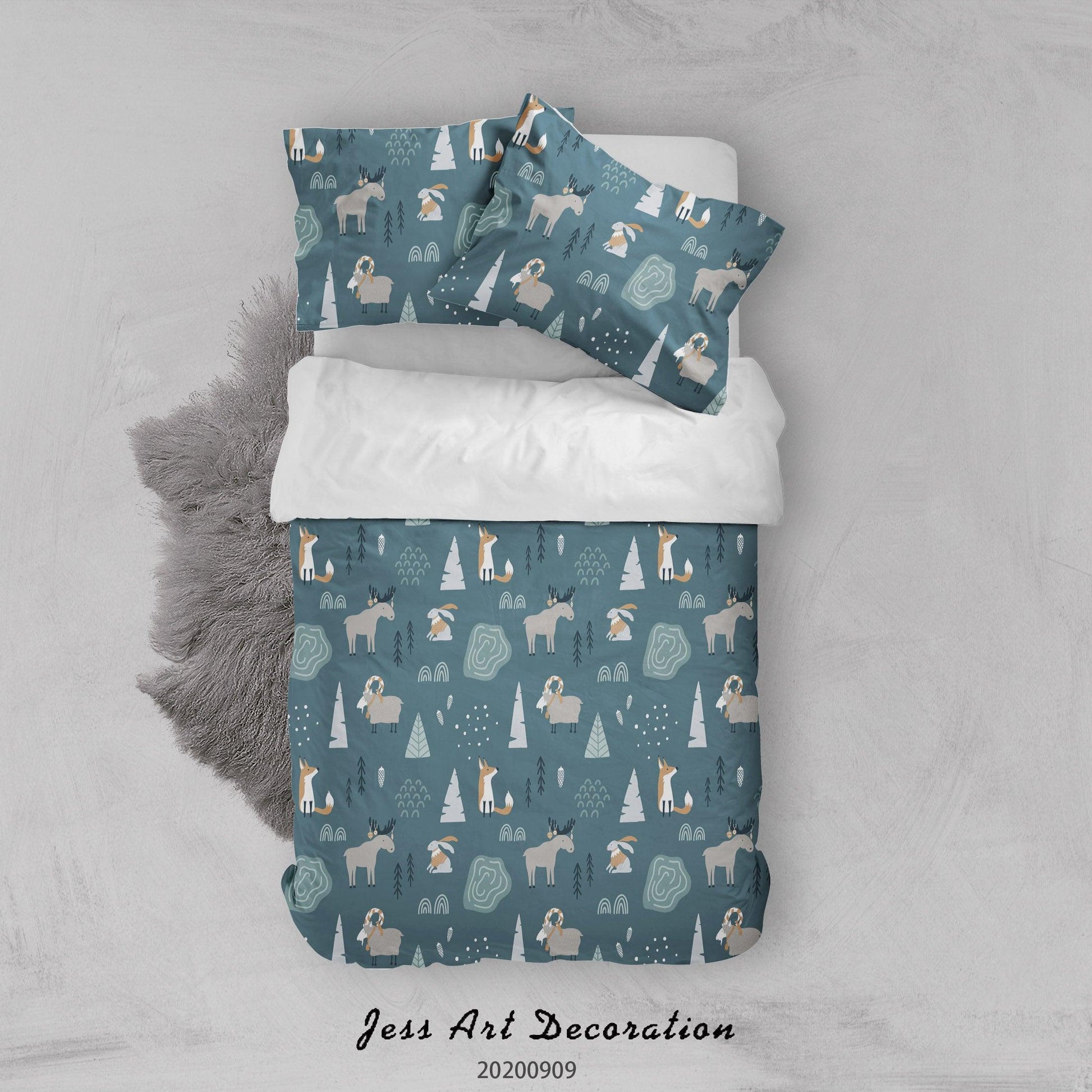 3D Animals Fox Goat Elk Rabbit Forest Pattern Quilt Cover Set Bedding Set Duvet Cover Pillowcases WJ 1981