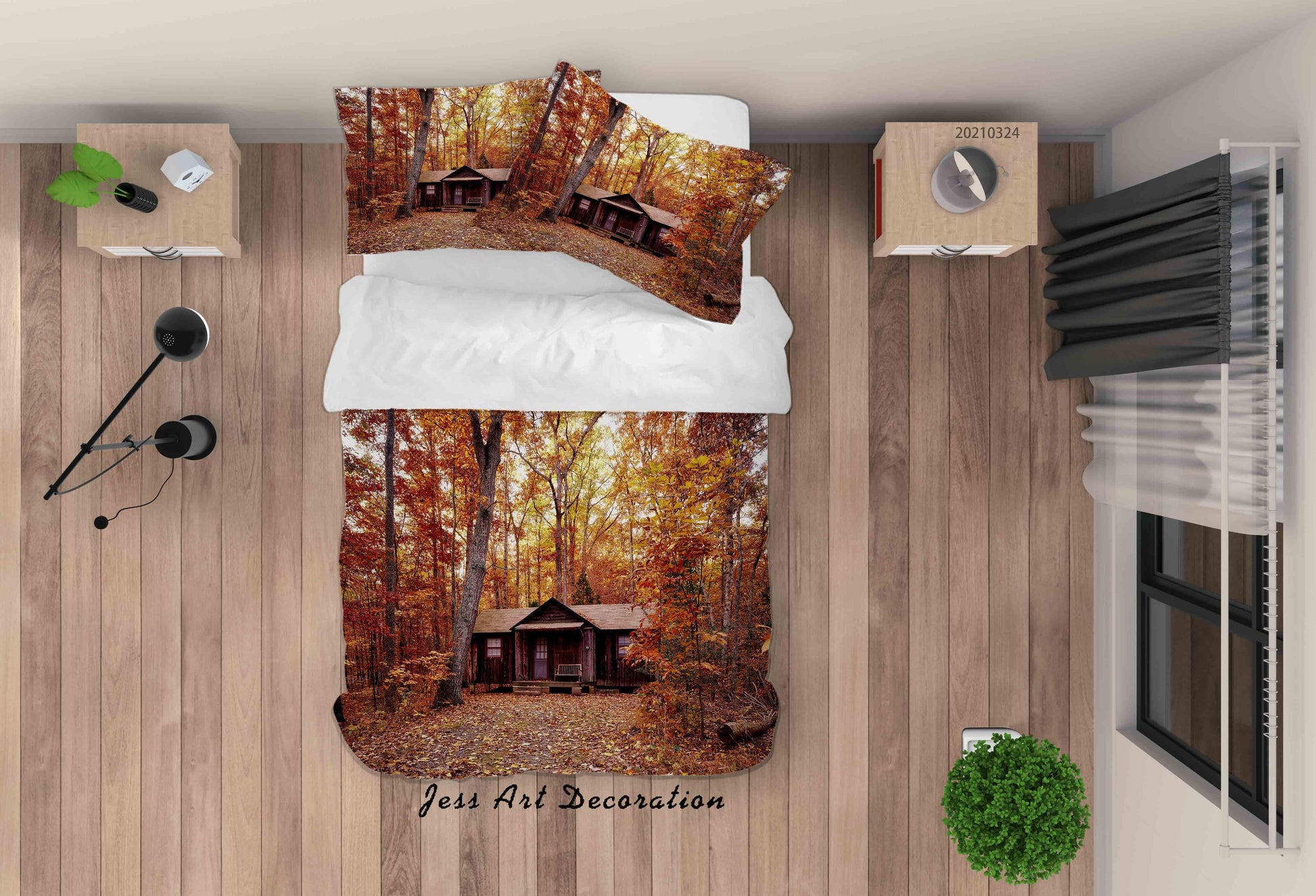 3D Autumn Forest House Quilt Cover Set Bedding Set Duvet Cover Pillowcases 155 LQH