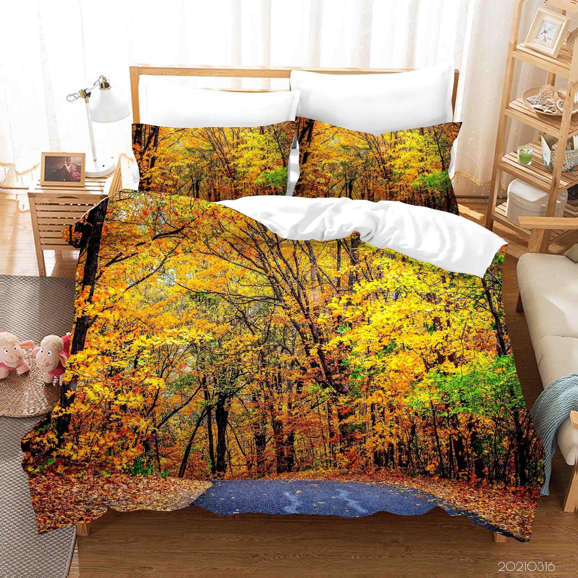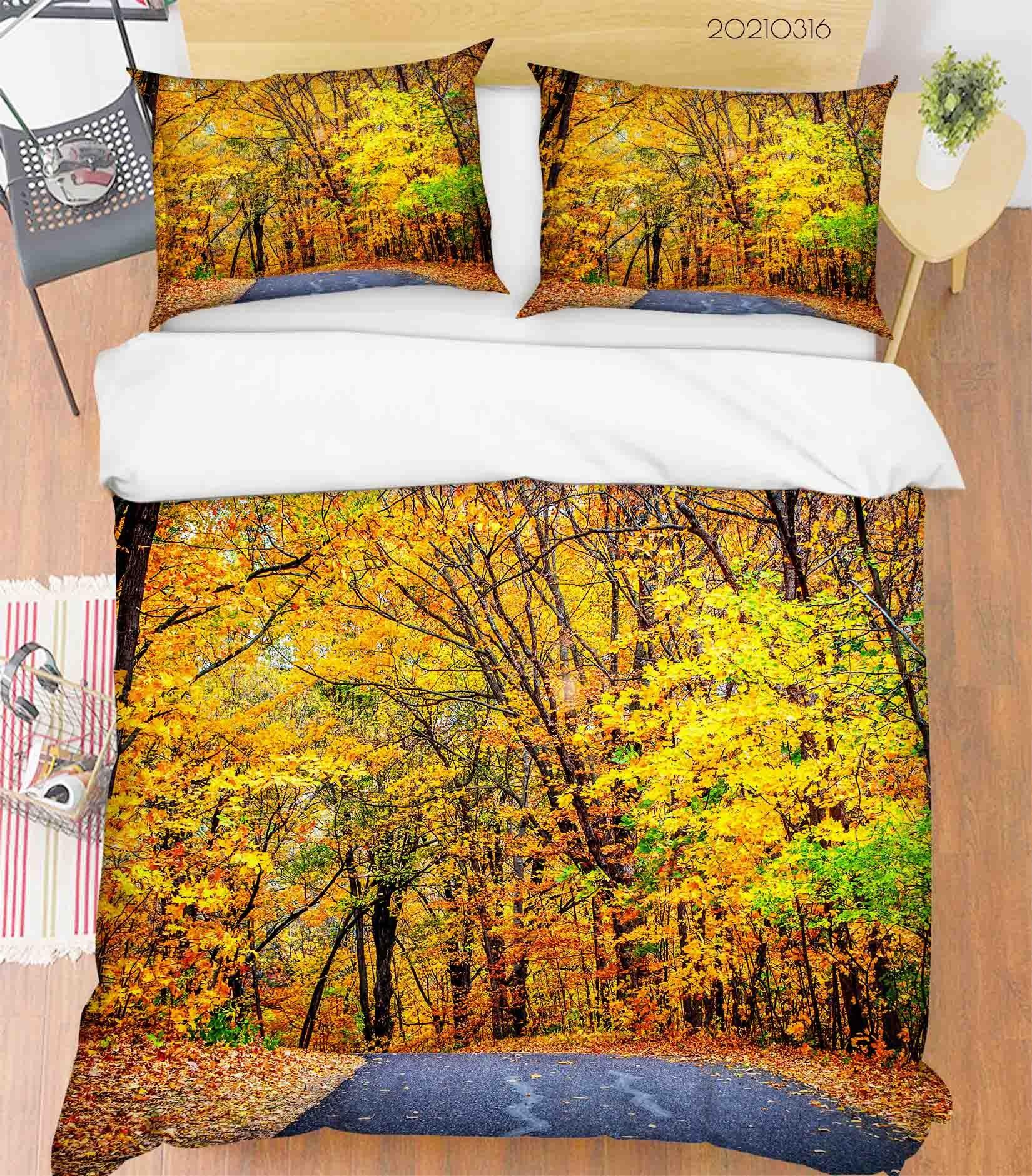 3D Autumn Forest Road Landscape Quilt Cover Set Bedding Set Duvet Cover Pillowcases 195