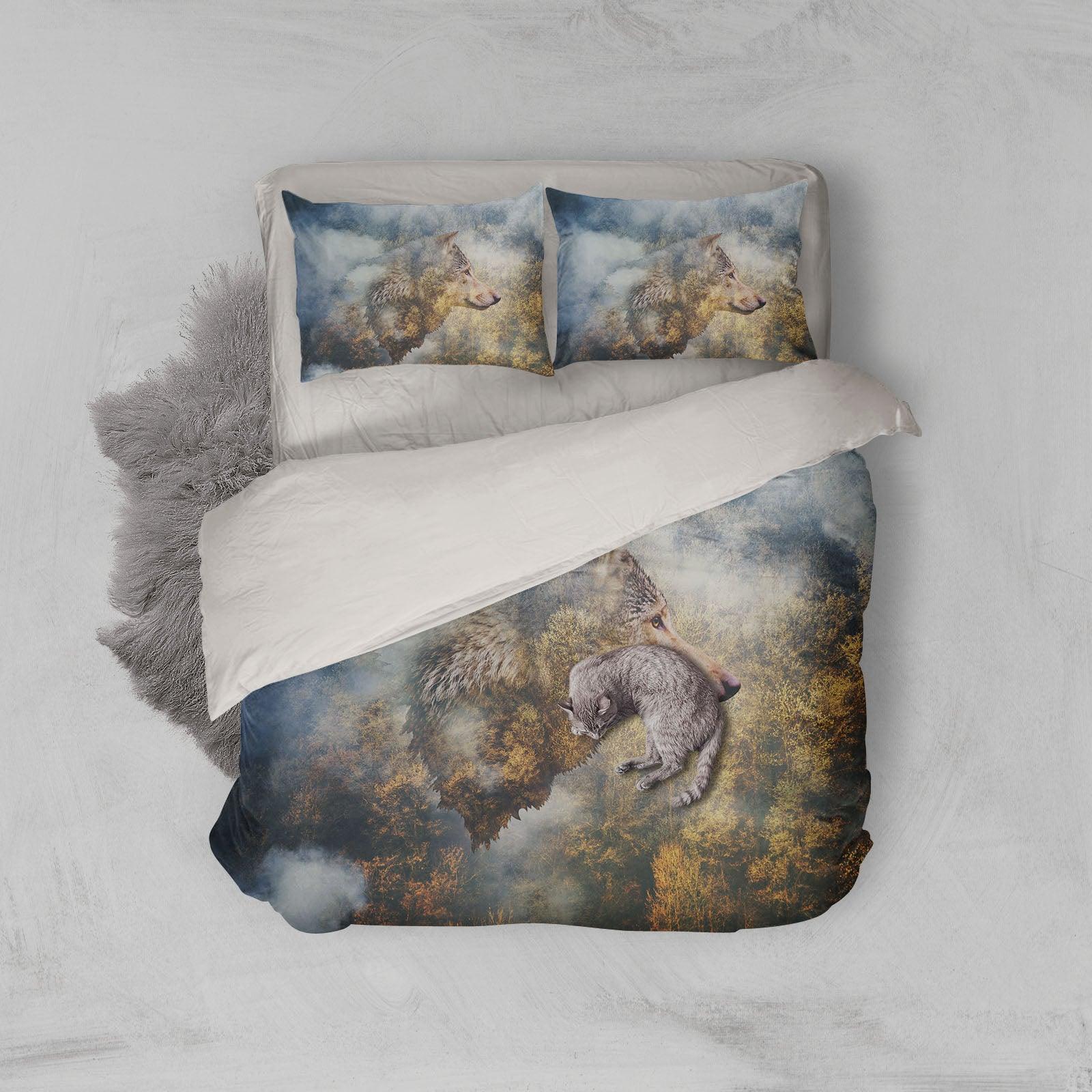 3D Autumn Forest Wolf Quilt Cover Set Bedding Set Pillowcases 108