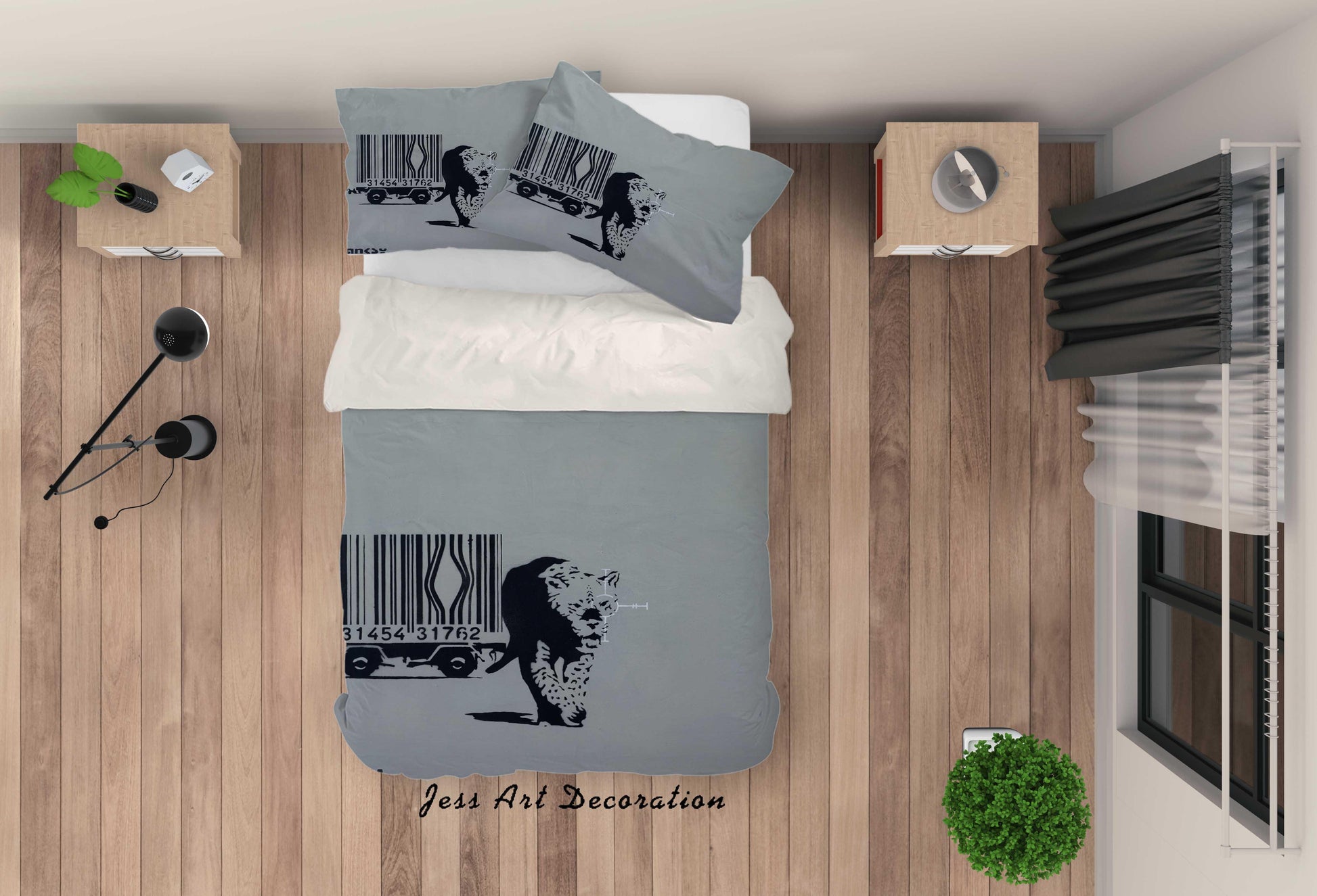 3D Banksy Barcode Leopard Black White Quilt Cover Set Bedding Set Pillowcasesn ZY D6