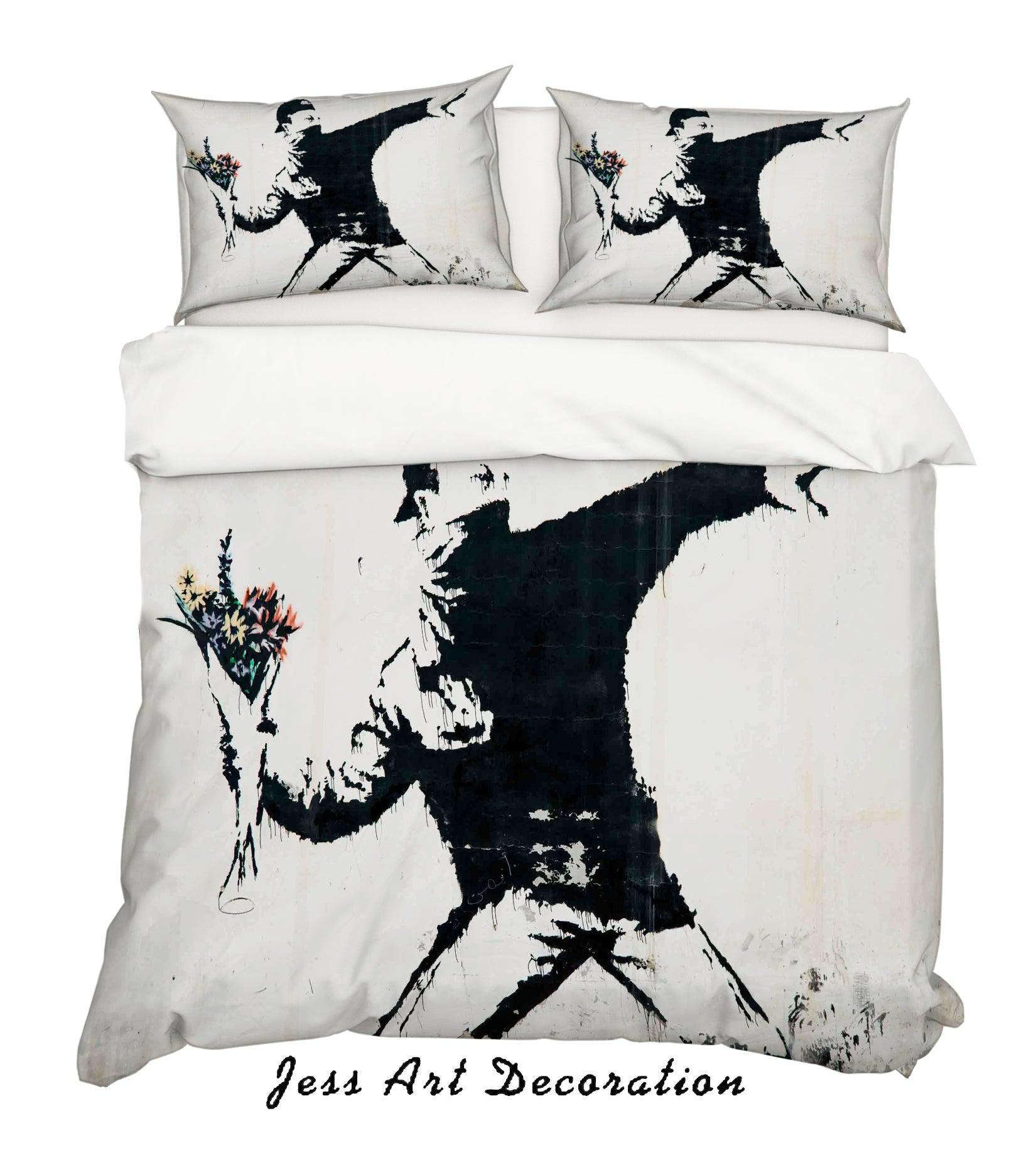 3D Banksy Black White Figure Flower Color Quilt Cover Set Bedding Set Duvet Cover Pillowcases ZY D25