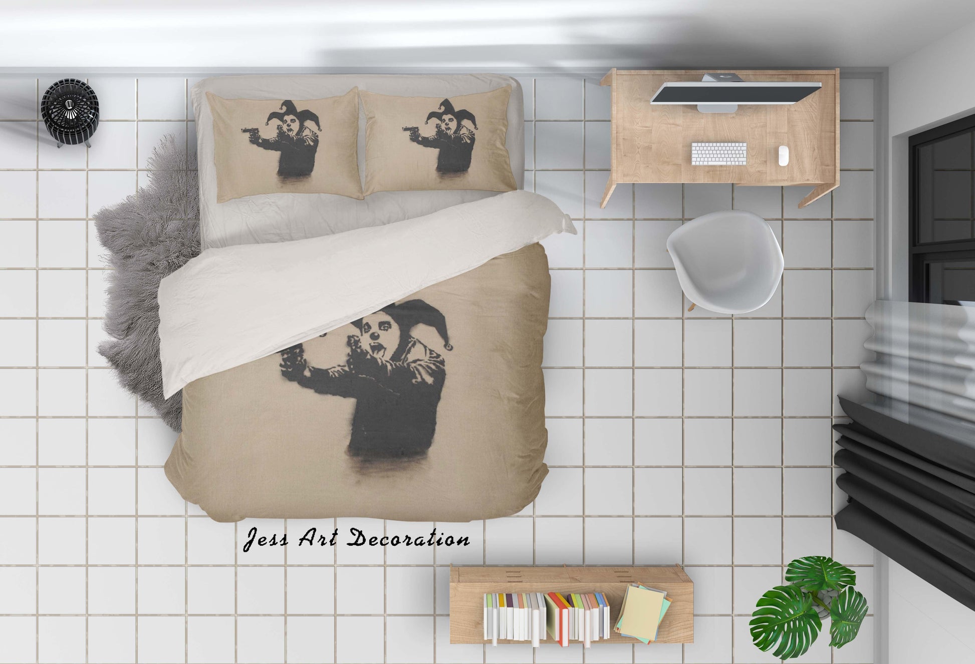 3D Banksy Insane Clown Black White Quilt Cover Set Bedding Set Duvet Cover Pillowcases ZY D33