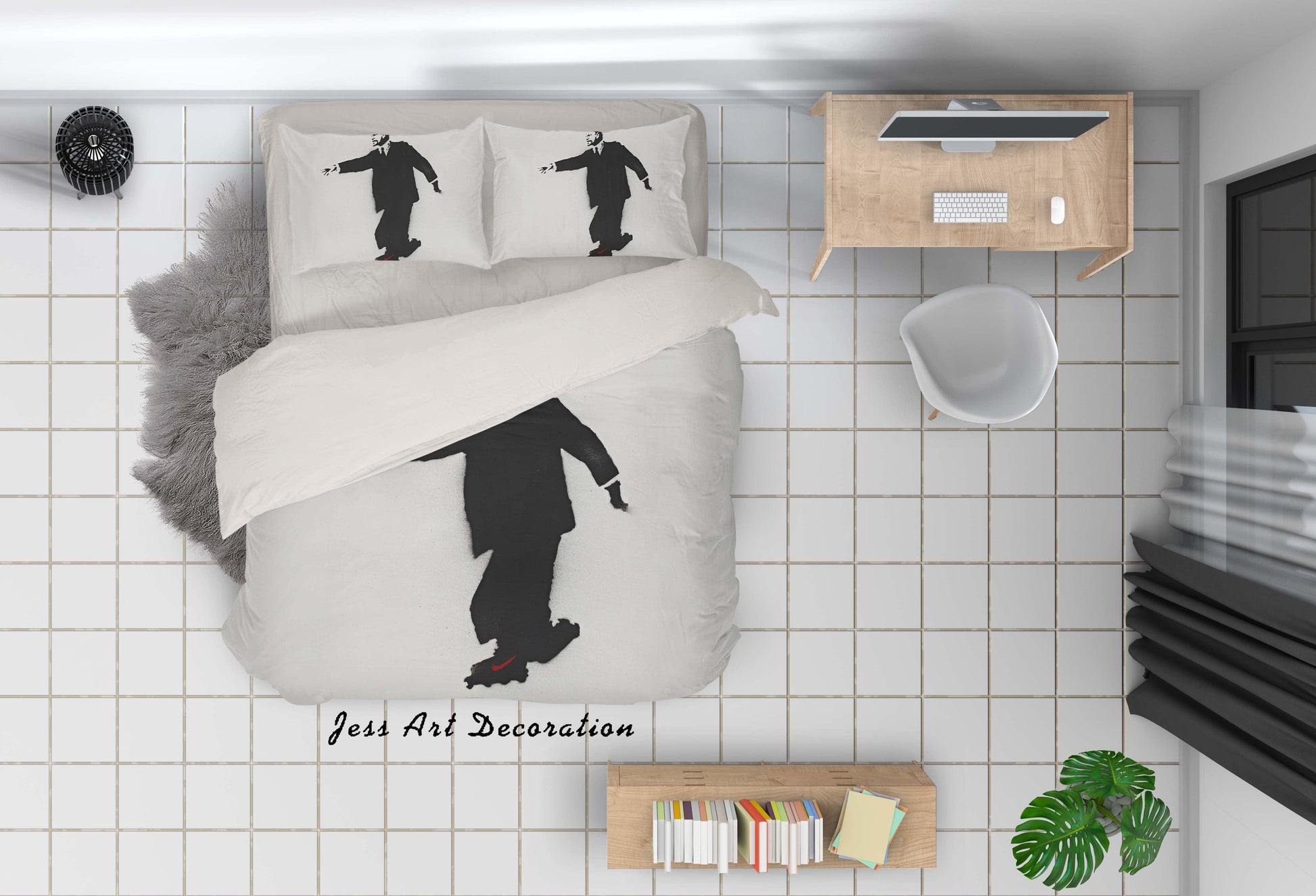 3D Banksy Lenin Roller Skates White Background Quilt Cover Set Bedding Set Duvet Cover Pillowcases ZY D37