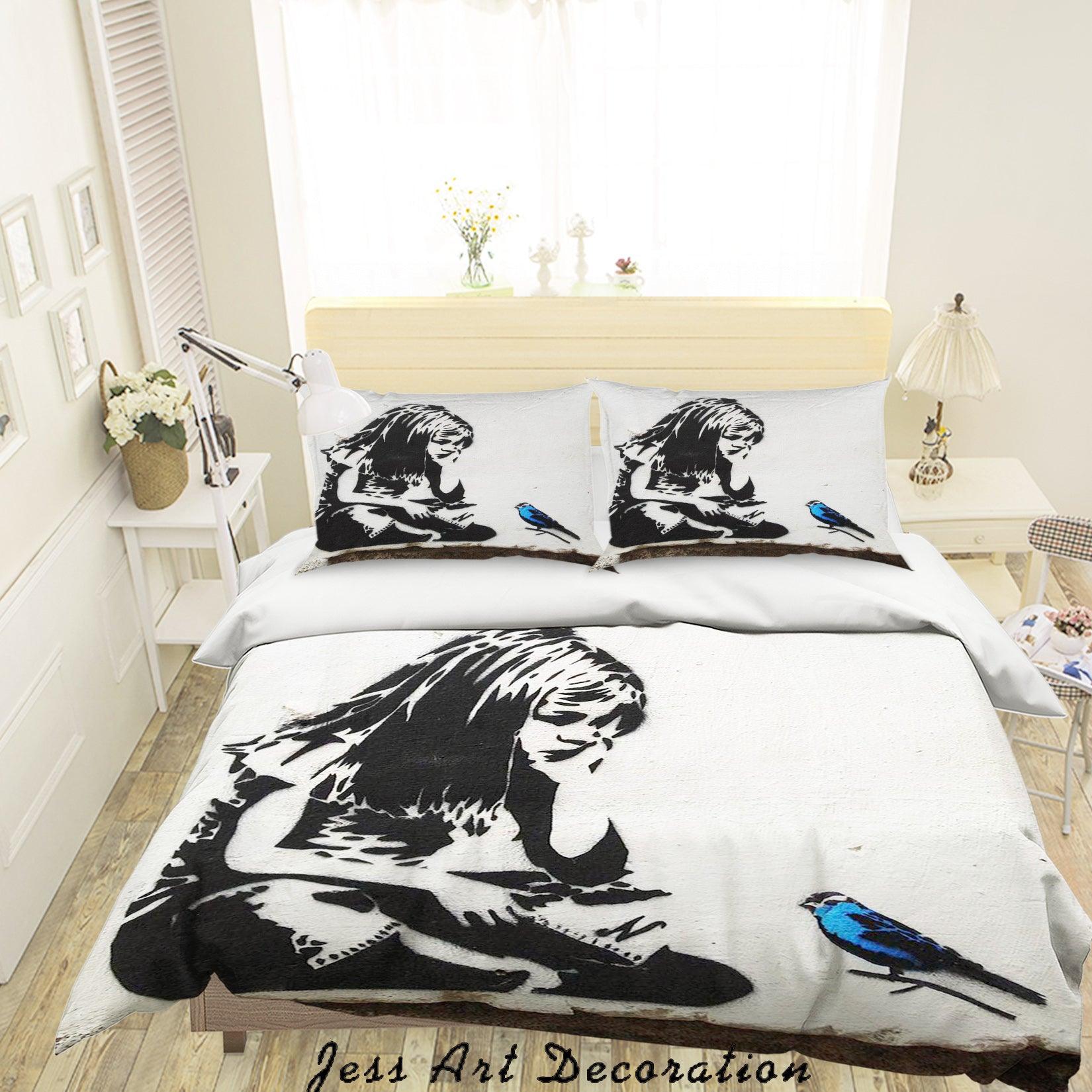 3D Banksy Mural Alone Girl Color Bird Quilt Cover Set Bedding Set Duvet Cover Pillowcases ZY D94
