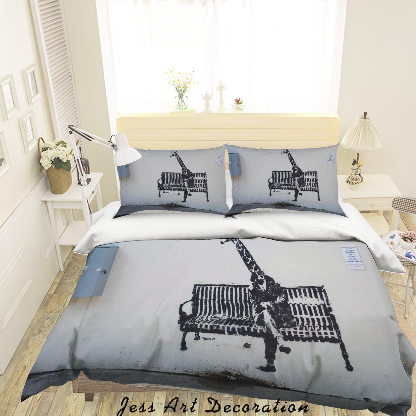 3D Banksy Mural Black White Mr.Giraff Quilt Cover Set Bedding Set Duvet Cover Pillowcases ZY D119