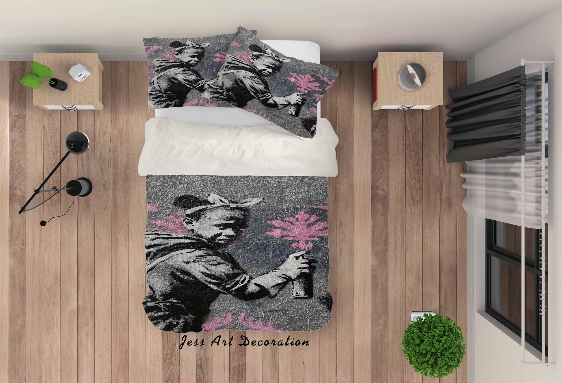 3D Banksy Mural Girl Pink Pattern Quilt Cover Set Bedding Set Duvet Cover Pillowcases ZY D87