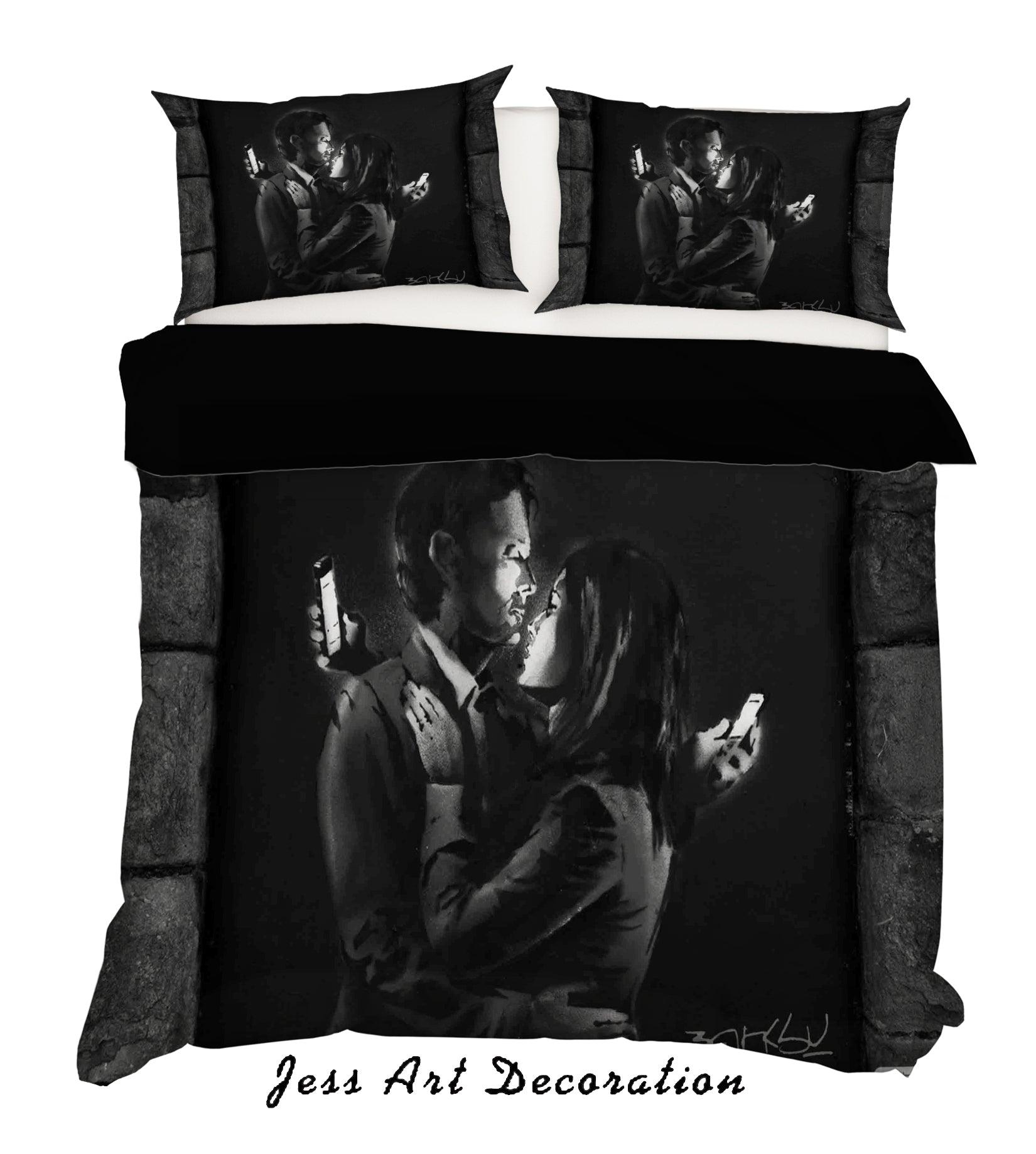 3D Banksy Mural Phone Lover Black White Quilt Cover Set Bedding Set Duvet Cover Pillowcases ZY D128