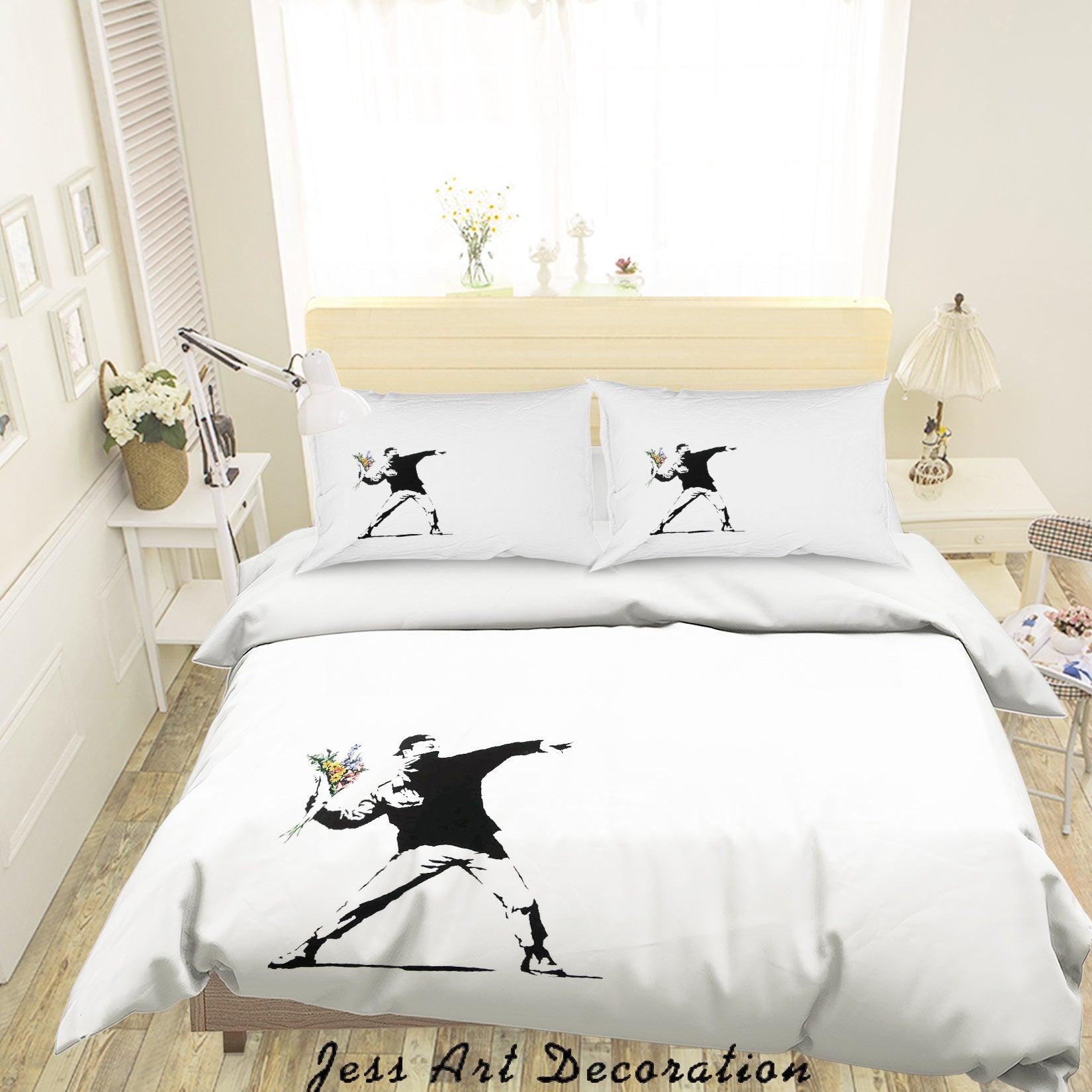 3D Banksy Mural Thrower Color Flower Quilt Cover Set Bedding Set Duvet Cover Pillowcases ZY D105