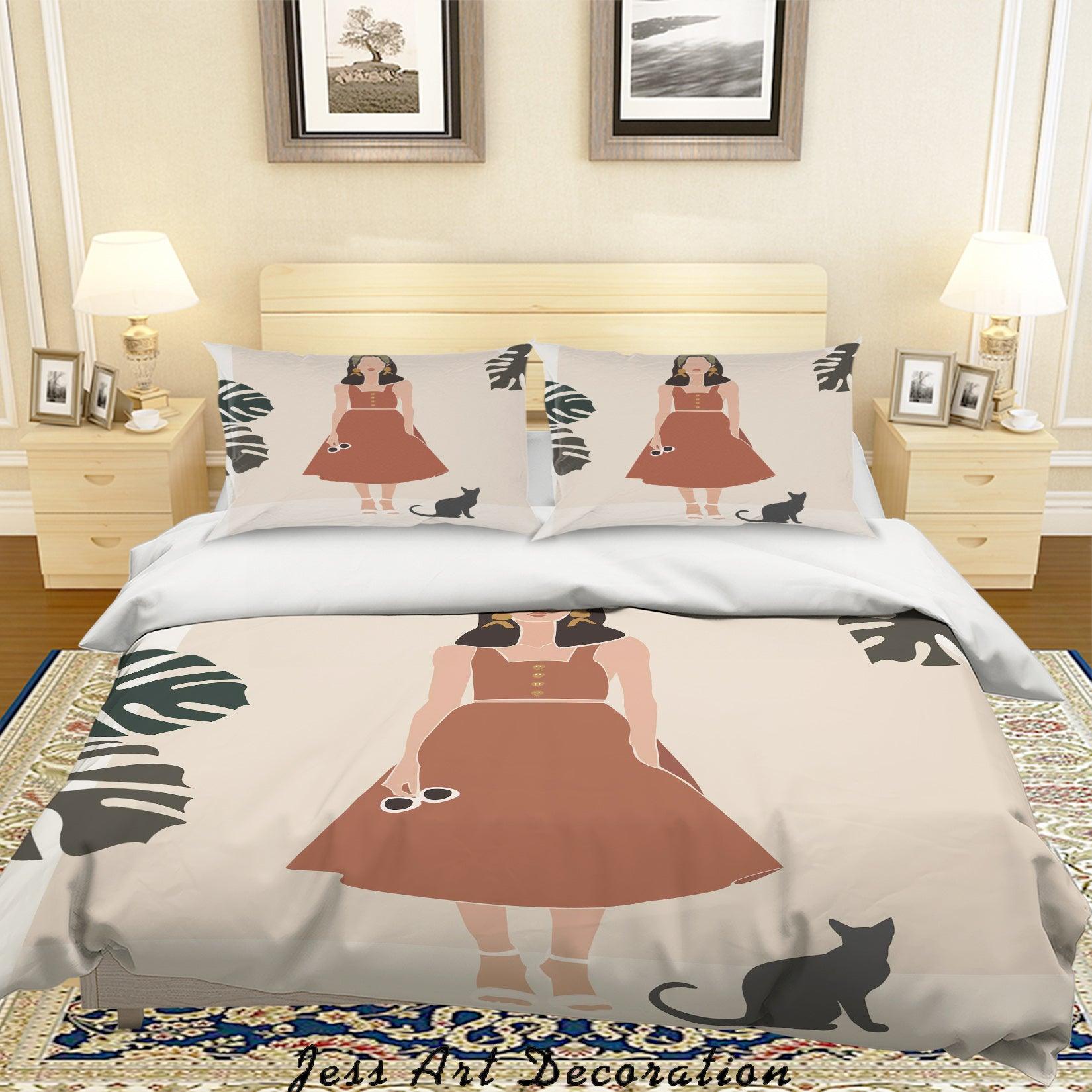 3D Beaauty Female Leaves Cat Quilt Cover Set Bedding Set Duvet Cover Pillowcases SF08