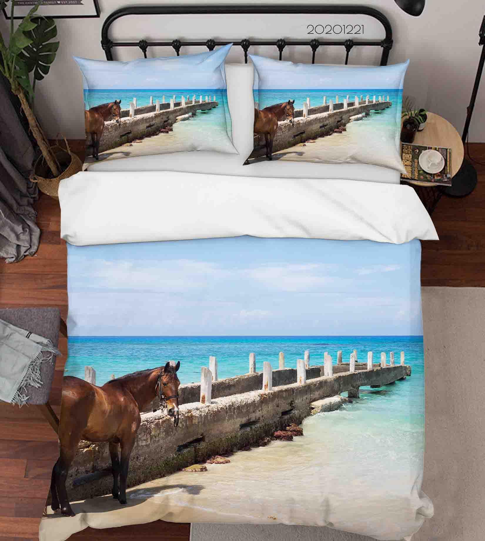 3D Beach Landscape Horse Quilt Cover Set Bedding Set Duvet Cover Pillowcases 180 LQH