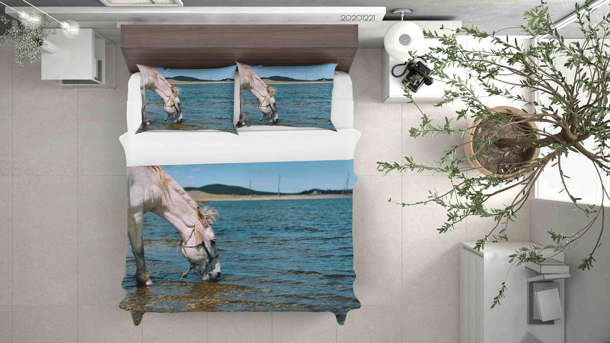 3D Beach White Horse Quilt Cover Set Bedding Set Duvet Cover Pillowcases 197 LQH