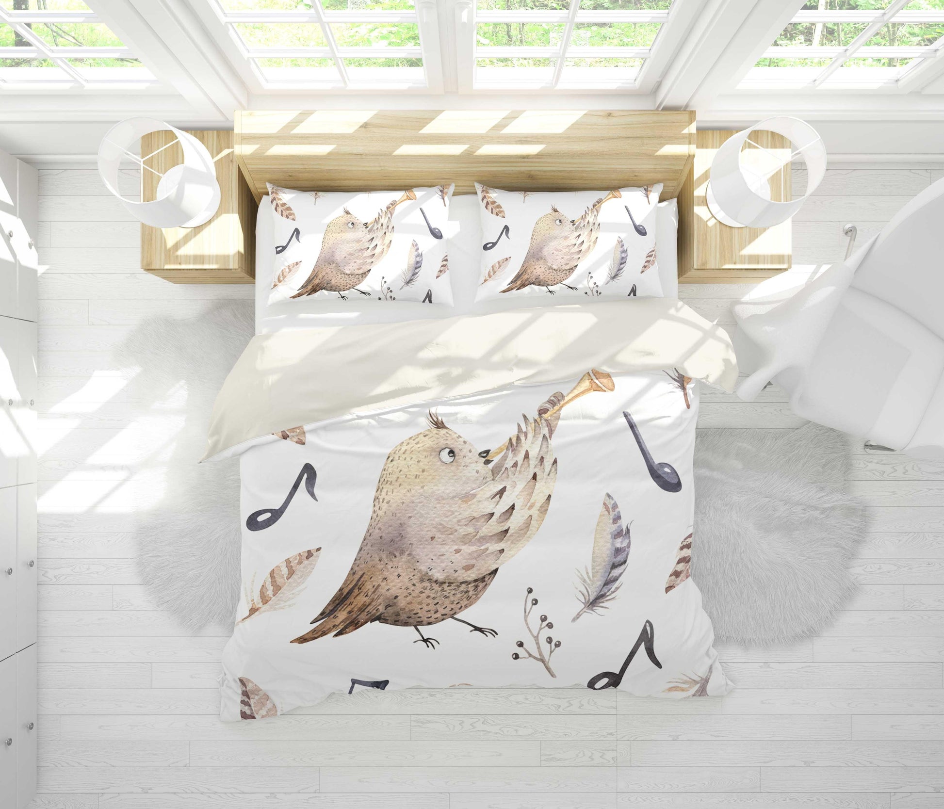 3D Bird Feather Playing Solo Quilt Cover Set Bedding Set Pillowcases 07