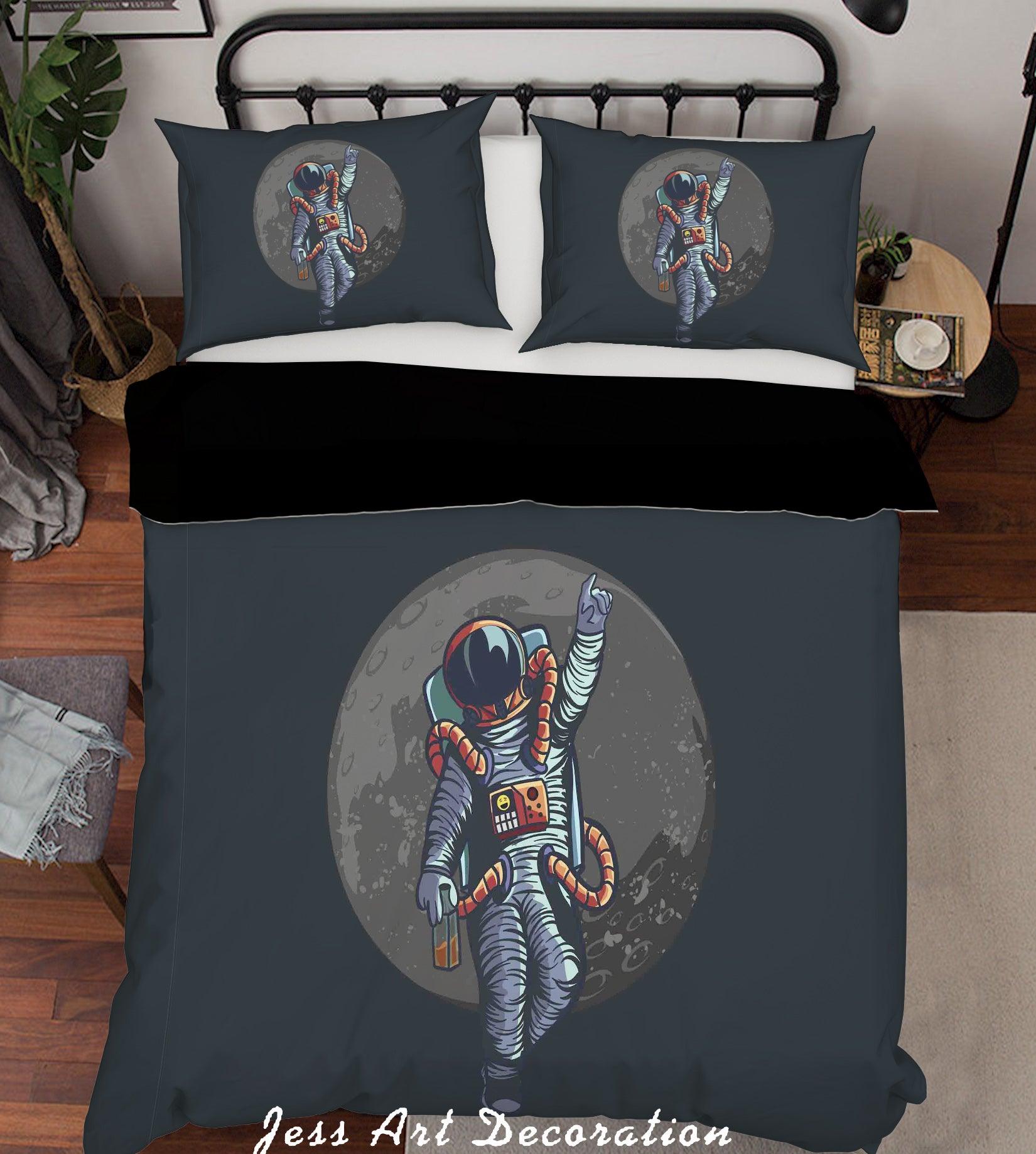 3D Black Astronaut Quilt Cover Set Bedding Set Pillowcases 01