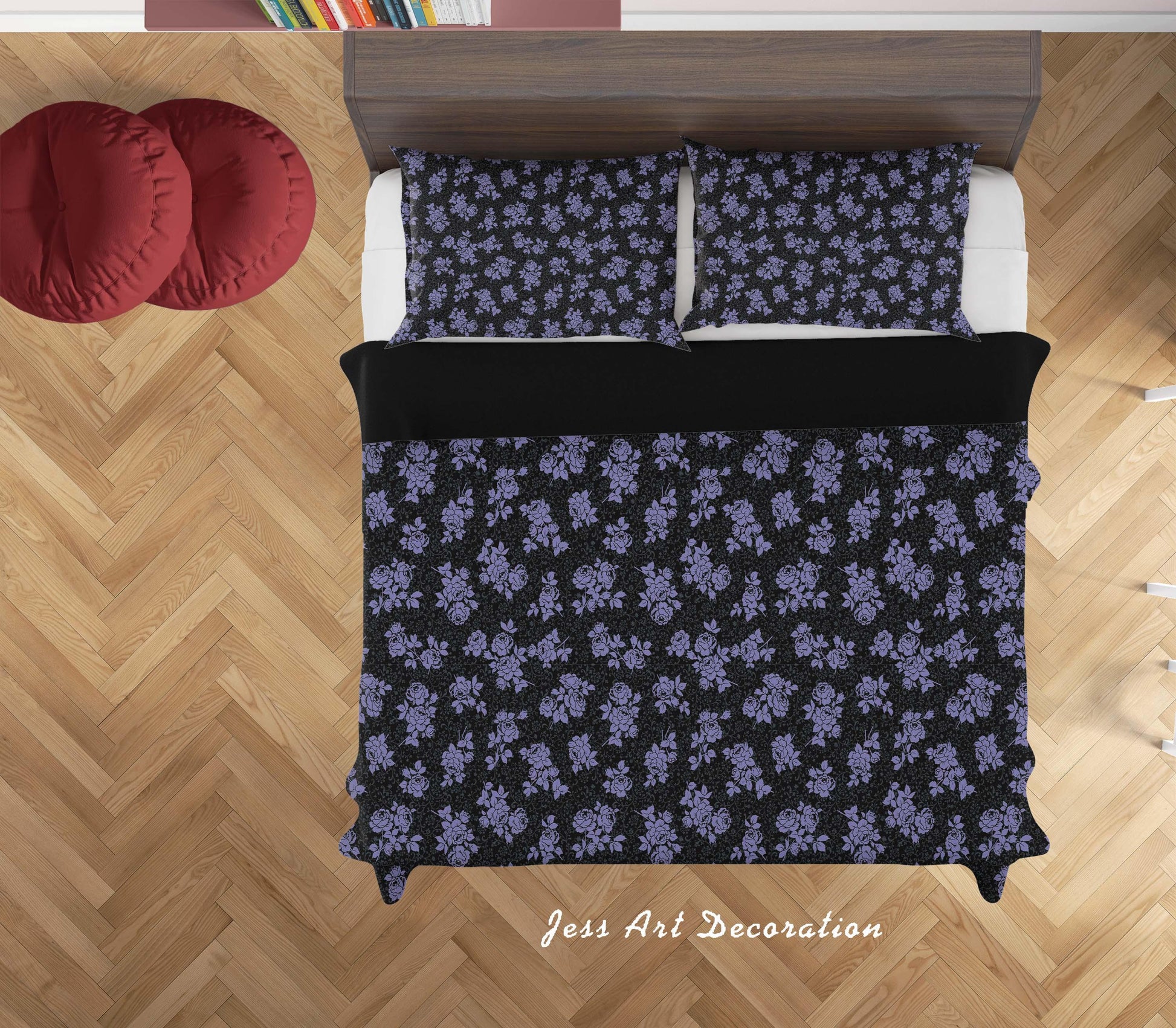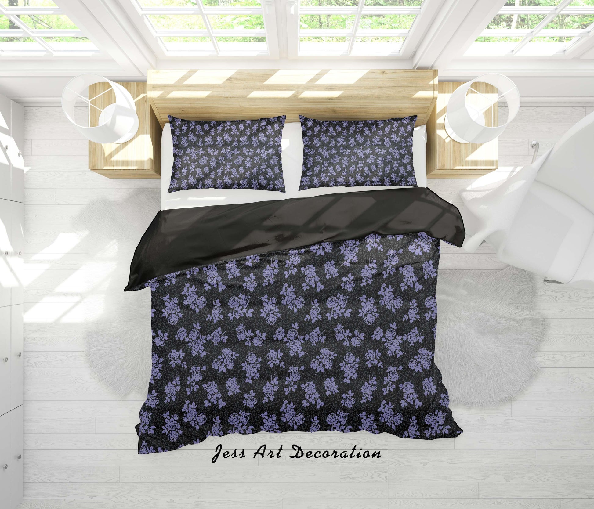 3D Black Blue Floral Quilt Cover Set Bedding Set Duvet Cover Pillowcases SF130