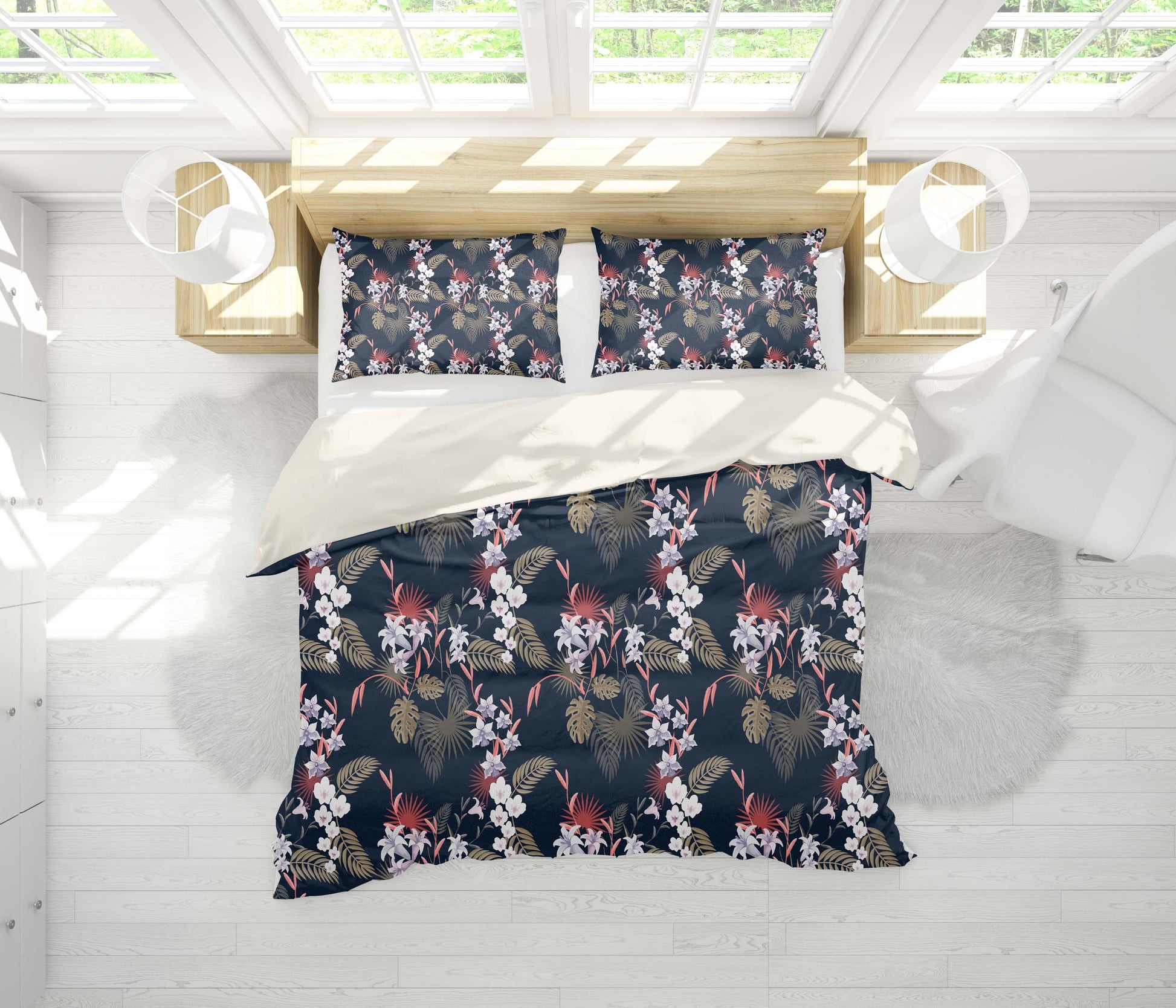 3D Black Floral Leaves Quilt Cover Set Bedding Set Pillowcases 174