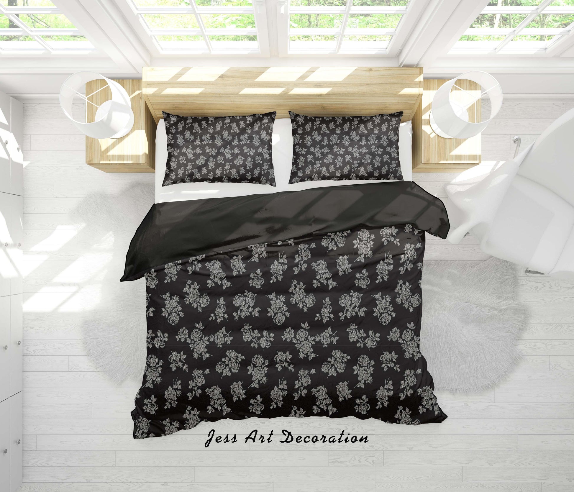 3D Black Floral Quilt Cover Set Bedding Set Duvet Cover Pillowcases SF128