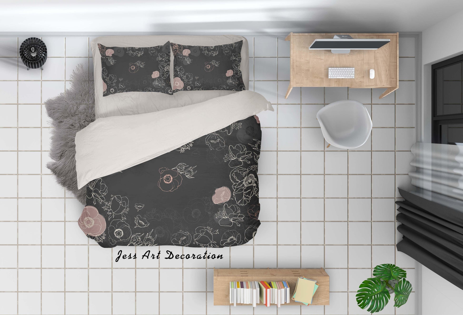 3D Black Floral Quilt Cover Set Bedding Set Pillowcases 29