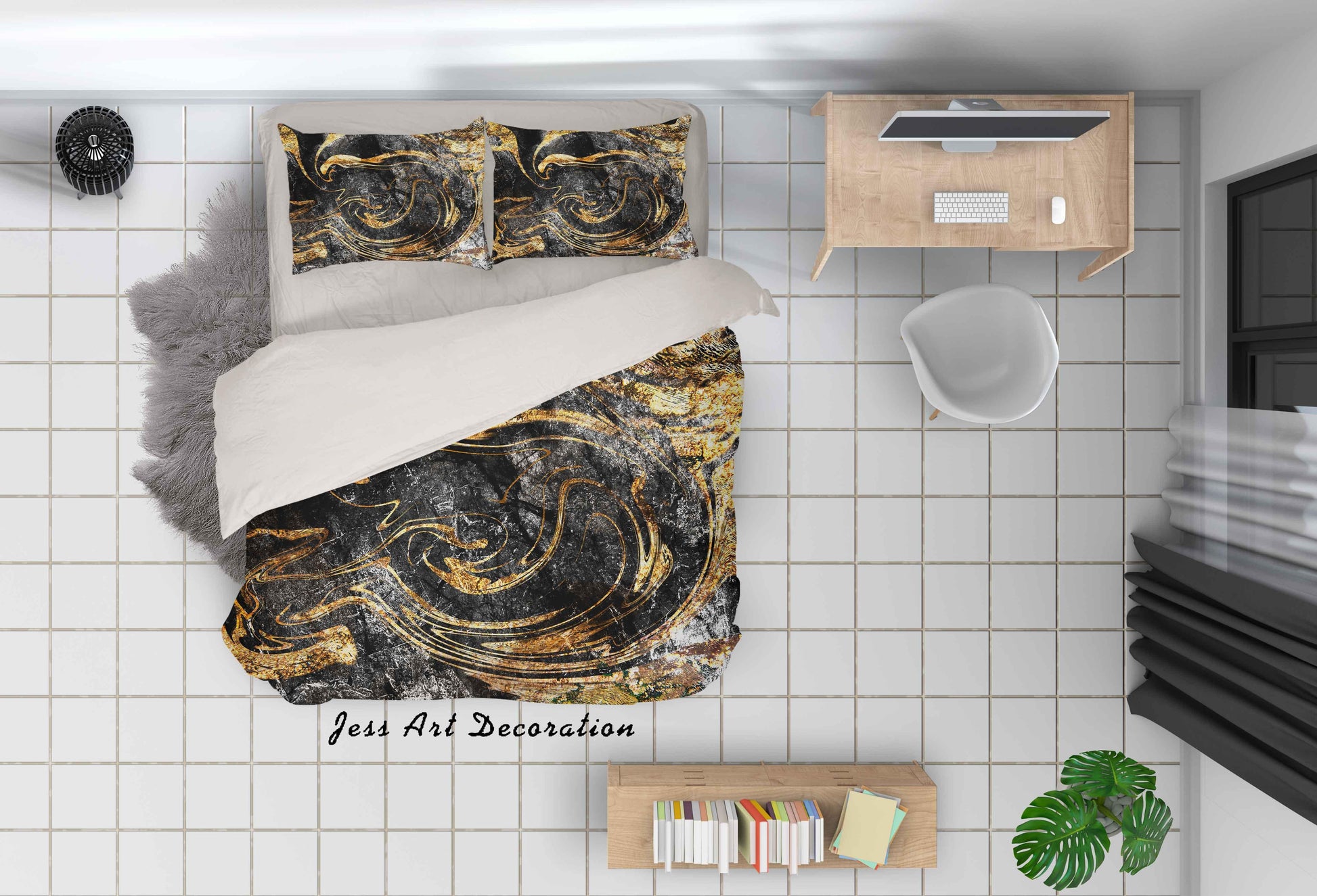 3D Black Flow Golden Quilt Cover Set Bedding Set Duvet Cover Pillowcases SF96