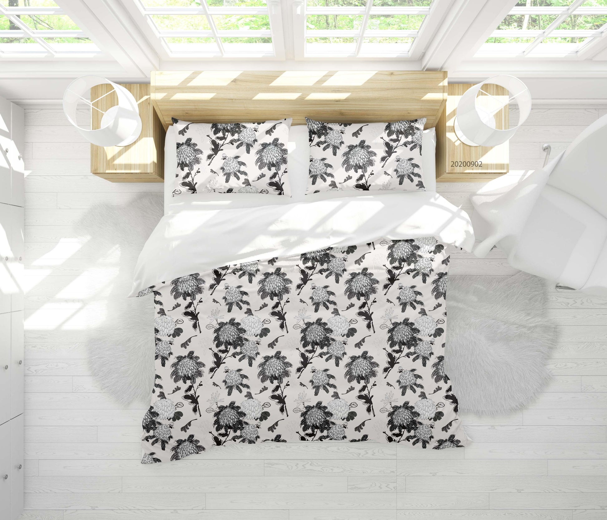 3D Black Flowers Pattern Quilt Cover Set Bedding Set Duvet Cover Pillowcases WJ 1499