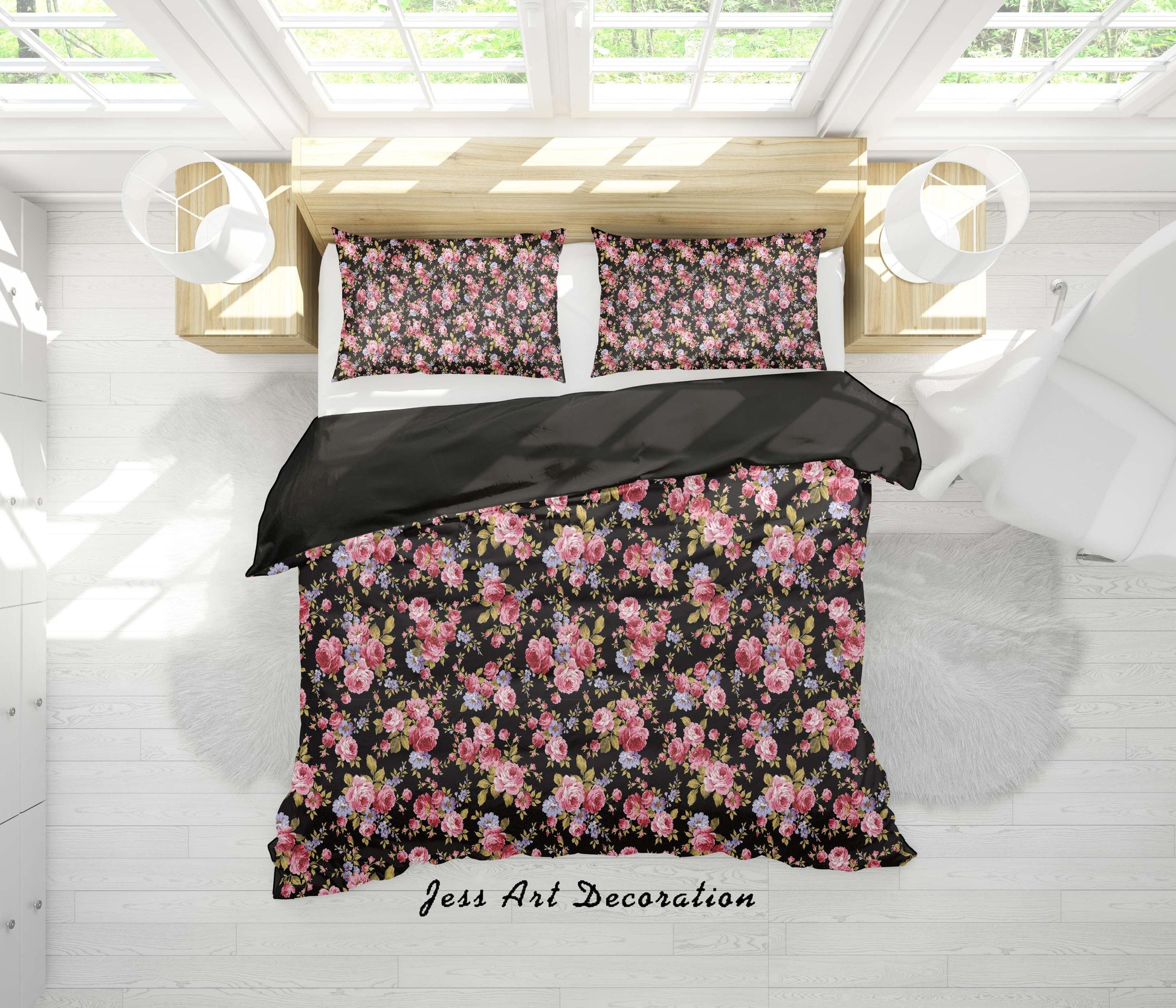3D Black Flowers Quilt Cover Set Bedding Set Duvet Cover Pillowcases SF125