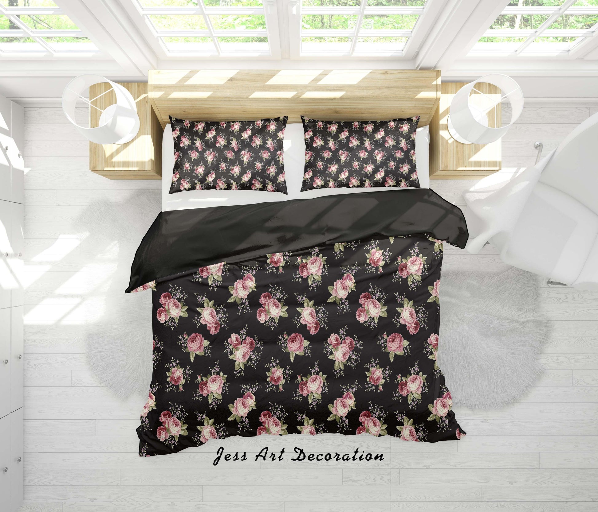 3D Black Flowers Quilt Cover Set Bedding Set Duvet Cover Pillowcases SF138