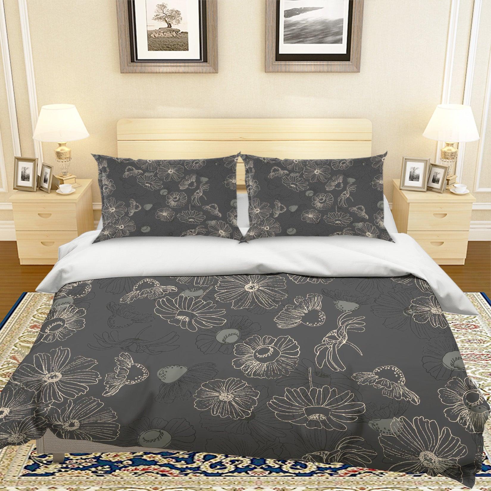 3D Black Flowers Quilt Cover Set Bedding Set Pillowcases 30