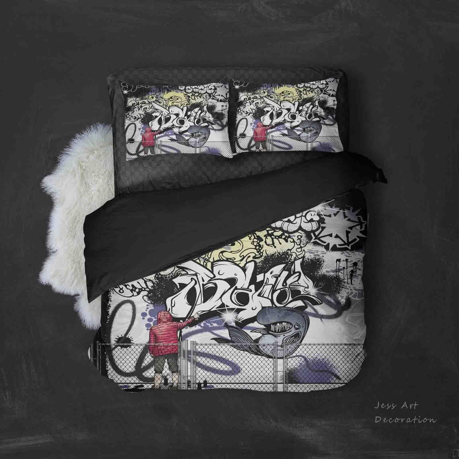 3D Black Graffiti Quilt Cover Set Bedding Set Duvet Cover Pillowcases SF087