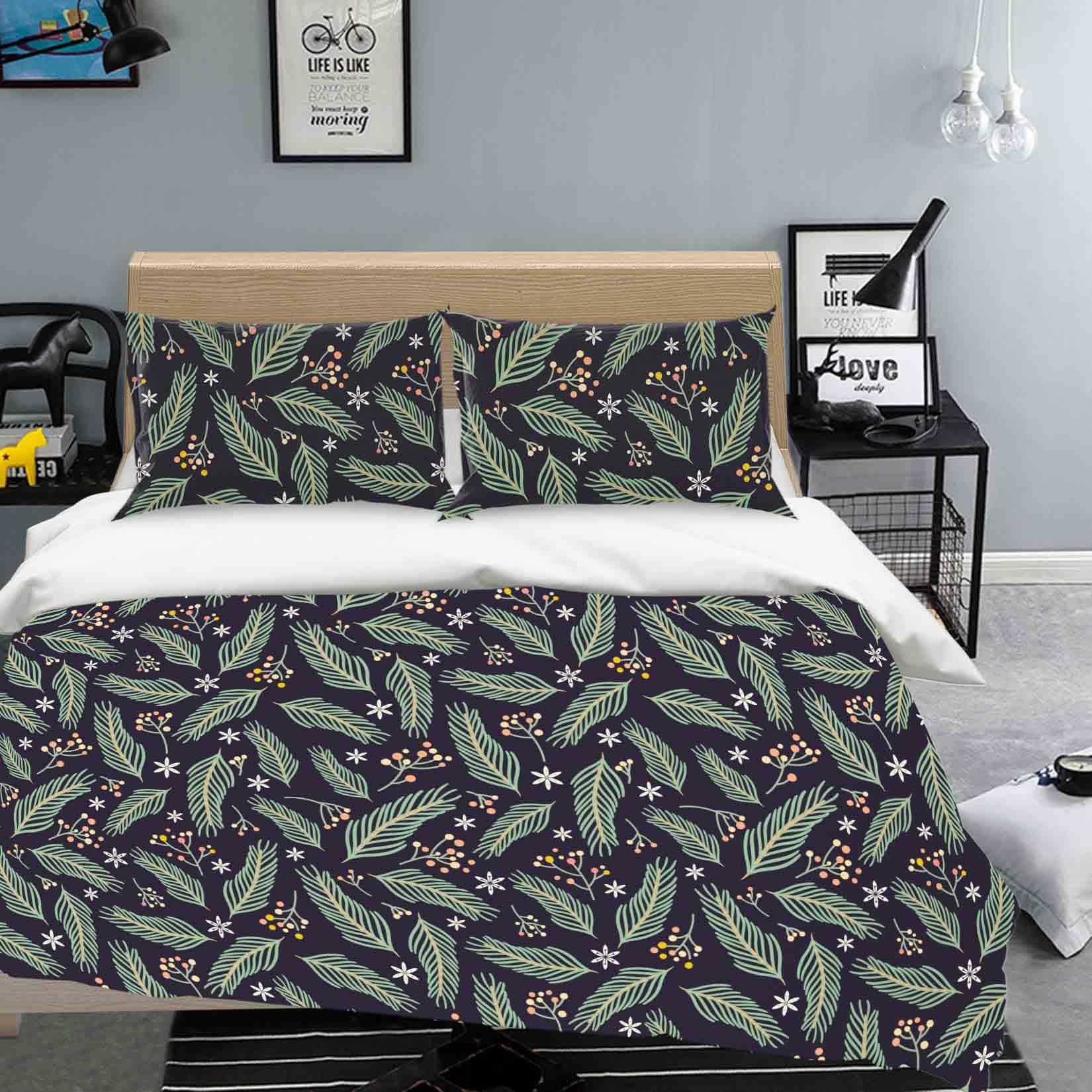 3D Black Green Floral Leaves Quilt Cover Set Bedding Set Pillowcases 22